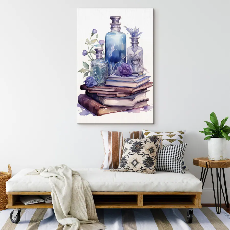 Plongez dans cette aquarelle enchanteresse représentant une charmante pile de livres et d’élégantes bouteilles. Imaginez les teintes douces qui murmurent des histoires d’aventure et des contes oubliés, tandis que de délicates fleurs apparaissent, ajoutant une touche de grâce à la nature. C’est comme si vous aviez une petite bibliothèque de secrets sur votre mur. Parfait pour tous ceux qui ont envie d’apporter des vibrations douillettes à un coin lecture ou à un coin serein de leur maison. Imaginez-vous dans un fauteuil confortable, une boisson chaude à la main, transporté dans un monde de rêve où chaque coup d’œil à cette œuvre d’art suscite un peu de joie. Une façon délicieuse d’embellir n’importe quel espace !