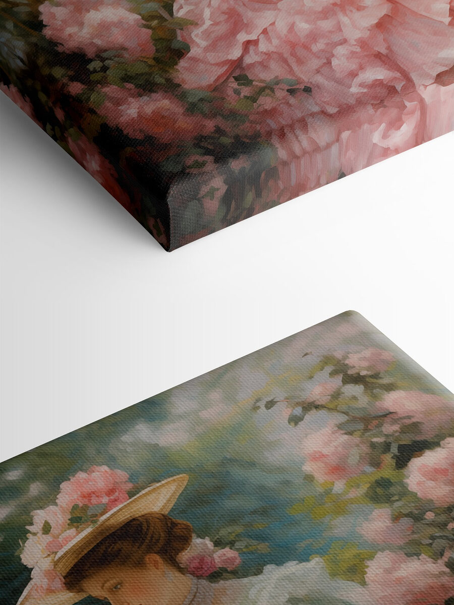 Entrez dans un monde d’élégance avec cette superbe impression sur toile représentant deux femmes vêtues de belles robes et de chapeaux surdimensionnés. Imaginez le doux bruissement de leurs robes alors qu’elles sont assises au milieu de roses en fleurs, plongées dans un moment de grâce intemporelle. Cette œuvre d’art apporte une touche de charme vintage et une bouffée d’air frais à n’importe quel espace. C’est comme si vous invitiez un jardin de printemps dans votre maison ! Parfaite pour égayer un salon ou donner du cachet à un coin lecture douillet, cette œuvre murmure des histoires d’après-midi paisibles et de pique-niques ensoleillés. Préparez-vous à recevoir des compliments qui couleront comme du thé sucré lors d’un rassemblement estival !