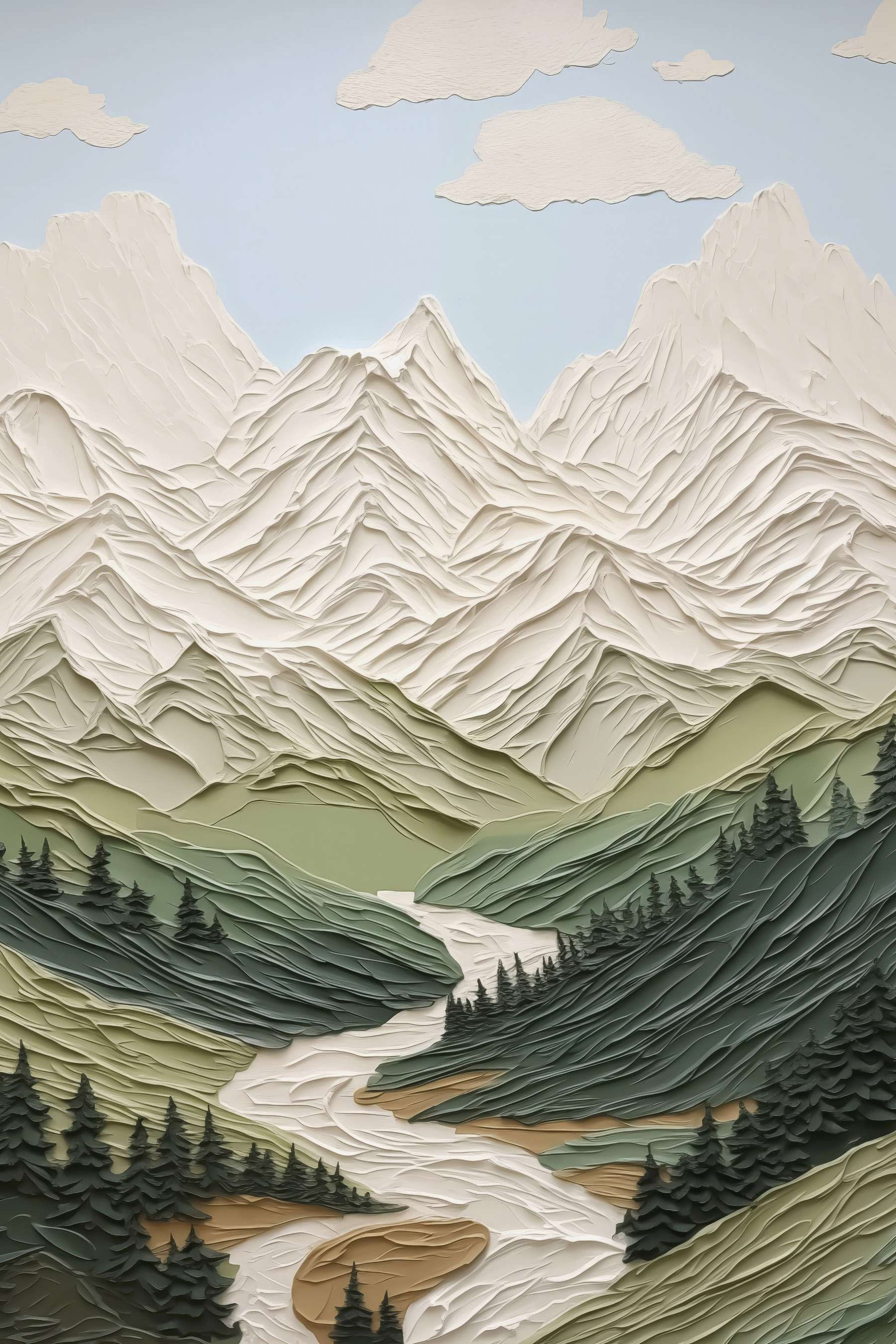 Entrez dans une tranche de nature douillette avec le papier découpé d’une montagne de Tableaux. C’est comme si vous faisiez entrer le grand air dans votre salon, sans les insectes et les problèmes météorologiques. Imaginez-vous en train de vous prélasser sur votre canapé, de siroter une boisson chaude et de vous perdre dans ces montagnes étagées et cette douce rivière qui s’écoule.