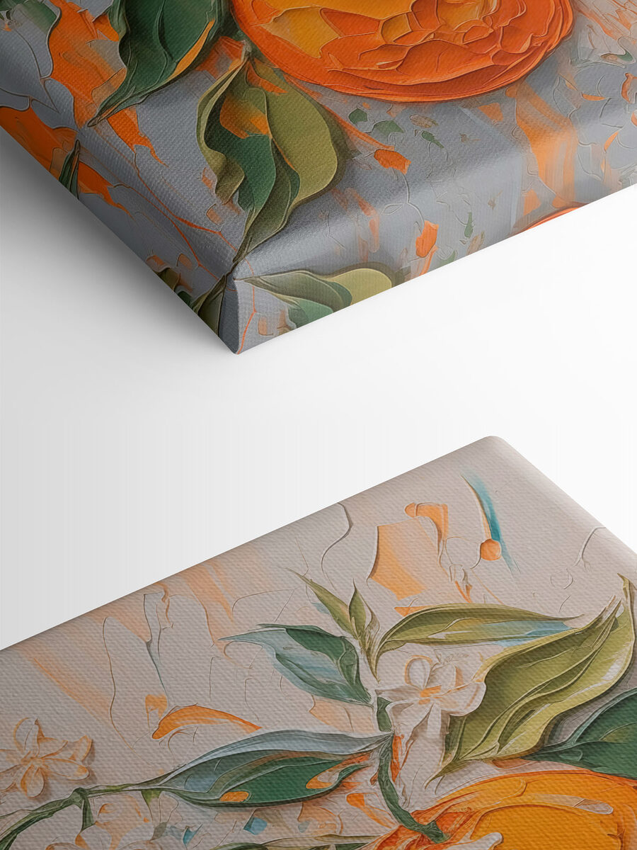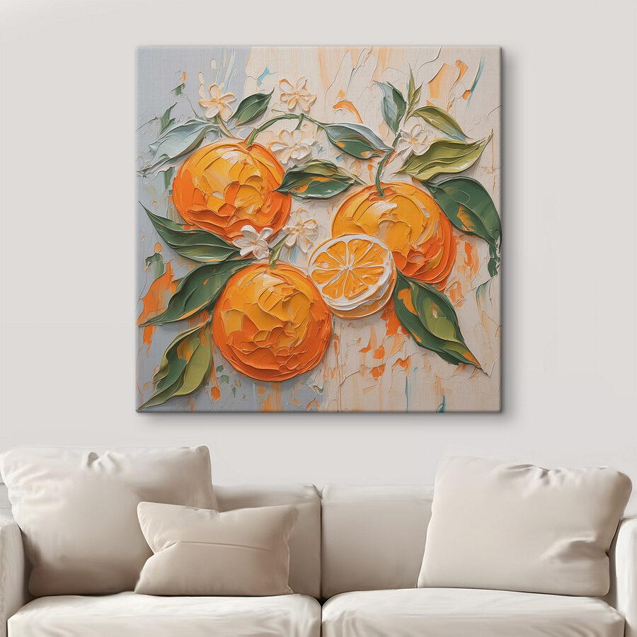 Illuminez votre espace avec cette impression sur toile représentant des oranges joyeux et des feuilles vertes luxuriantes. C’est comme une petite tranche de nature joyeuse, parfaite pour les moments où vous avez besoin d’une touche de couleur dans votre journée. Imaginez que vous passez devant chaque matin et que vous sentez l’énergie qu’il apporte, comme si vous pouviez sentir l’odeur des agrumes dans l’air. Les tourbillons ludiques et les teintes vibrantes suscitent instantanément la joie, donnant à chaque pièce une impression de fraîcheur et de vivacité. Idéale pour une cuisine ou un coin douillet, cette œuvre d’art ne manquera pas de susciter des sourires et peut-être même une envie de salade de fruits estivale. Qui aurait cru que la décoration pouvait être aussi savoureuse ?