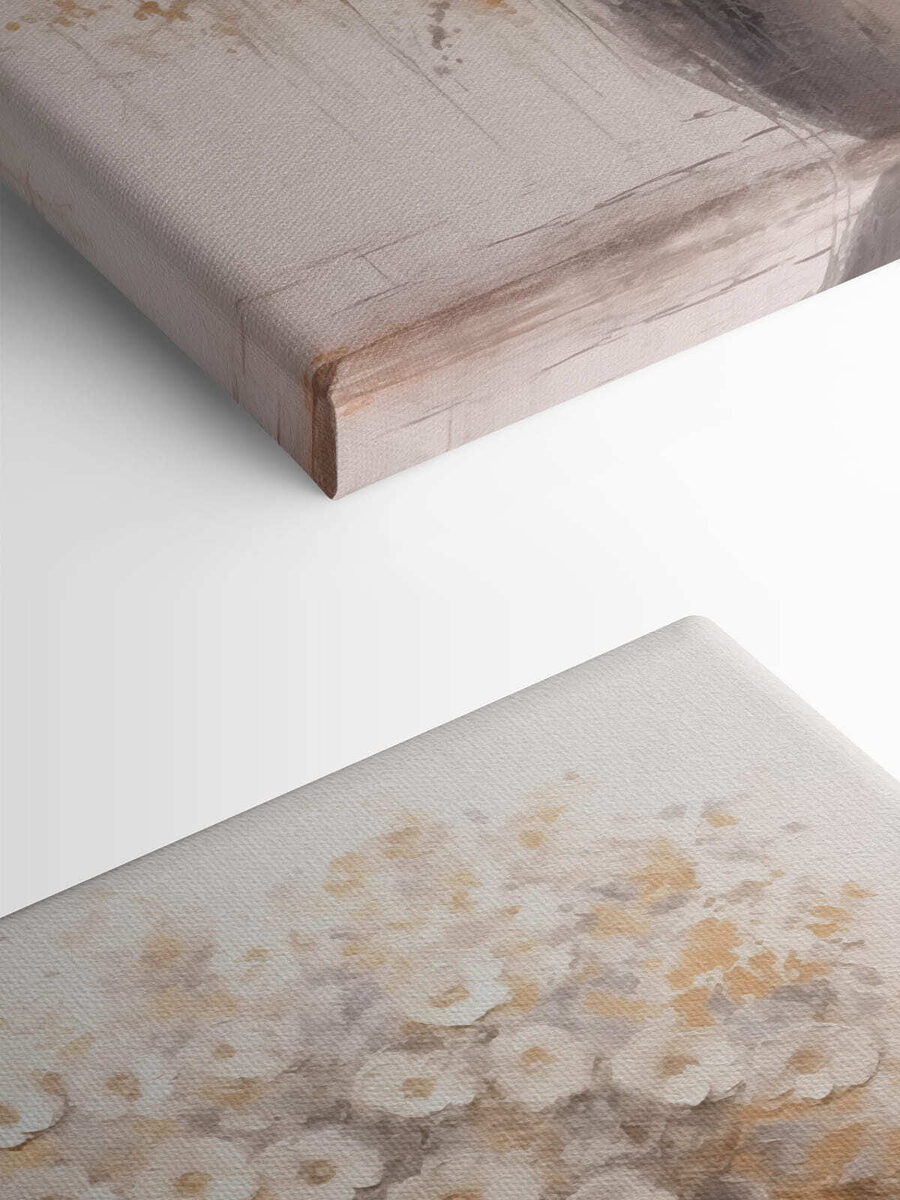 Illuminez n’importe quelle pièce avec cette charmante impression sur toile de fleurs dans un vase. Imaginez que vous entrez et que vous êtes accueilli par ces délicates fleurs, comme une fête de jardin dans votre salon. Les blancs doux et les tons terreux délicats créent une ambiance sereine, parfaite pour les coins douillets ou les espaces plus animés. Quelqu’un pourrait se verser une tasse de thé, s’asseoir sur le canapé et fixer cette œuvre d’art, perdu dans ses pensées ou ses souvenirs. C’est le genre d’œuvre qui invite à la rêverie, faisant de chaque coup d’œil une mini retraite. Un ajout charmant à toute collection, qui ne manquera pas de susciter la joie.