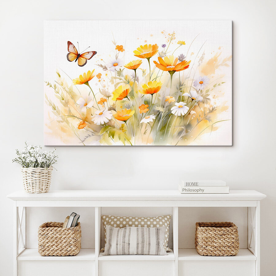 Imaginez que vous pénétrez dans un jardin où un papillon vibrant vole, donnant vie à un ensemble joyeux de fleurs jaunes et blanches. Cette impression sur toile capture ce moment exact, rayonnant de chaleur et de joie ! C’est comme si la nature vous offrait une petite fête sur votre mur. Chaque pétale et chaque coup de pinceau ressemble à une douce étreinte, parfaite pour égayer un salon ou un espace confortable. Un seul coup d’œil à cette œuvre d’art et vous aurez peut-être envie de mettre un chapeau de soleil et de partir à l’aventure à l’extérieur. Qu’il s’agisse d’une tasse de thé ou d’un livre que vous aimez, cette œuvre d’art plante le décor comme il se doit. Une touche de couleur qui murmure “Hé, la vie est belle !”.