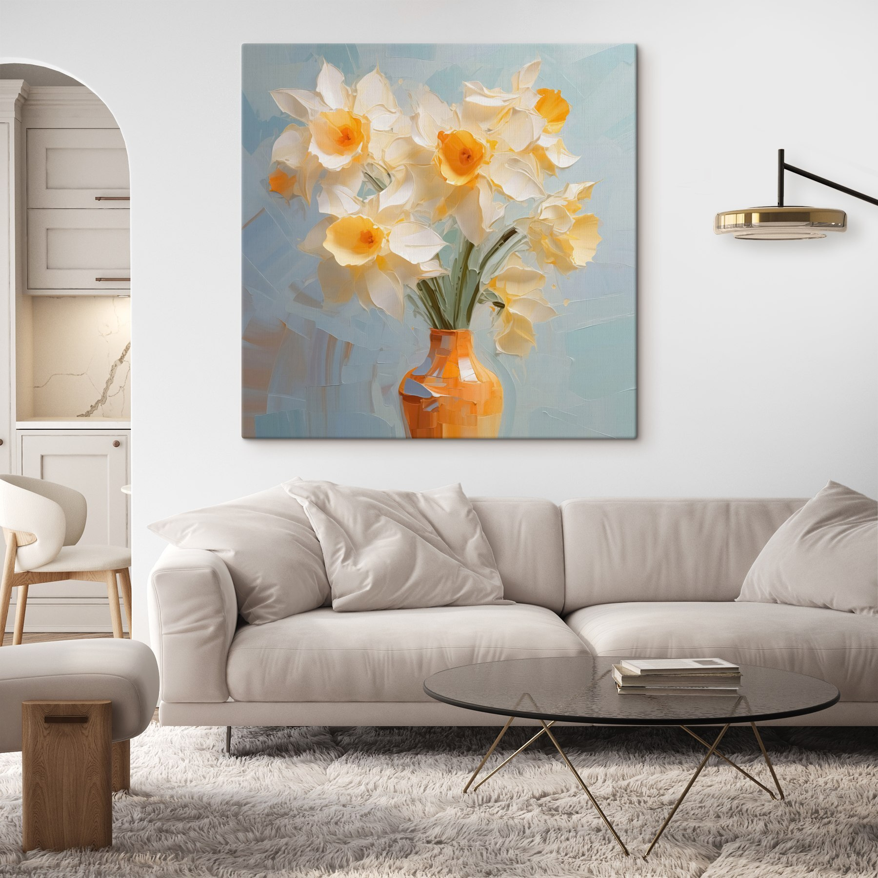 Illuminez n’importe quel espace avec cette délicieuse impression sur toile “Fleurs jaunes et blanches dans un vase”. Imaginez que vous entrez dans une pièce où les teintes douces des fleurs fraîches vous donnent le sourire – c’est comme une journée ensoleillée capturée sur une toile. C’est comme une journée ensoleillée capturée sur une toile. Le soleil joyeux et les doux pétales semblent évoquer des jours plus chauds à venir. Ce tableau est parfait pour un coin douillet, peut-être accompagné d’une tasse de café fumant ou d’une lecture de fin de semaine qui vous absorbe totalement. Sérieusement, c’est le genre d’art qui attire les compliments et suscite les conversations. Le pollen en moins, bien sûr !