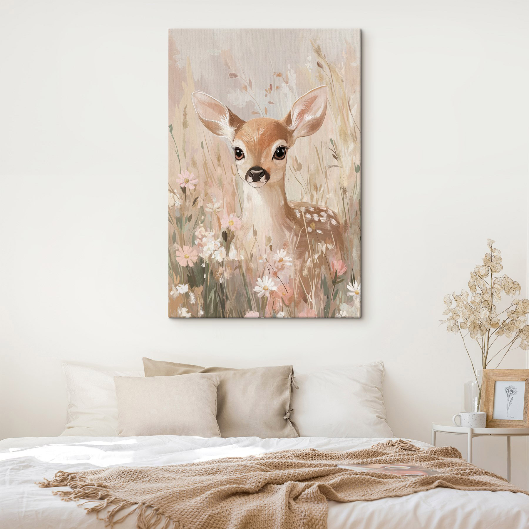 Apportez une touche de sérénité à votre intérieur avec cette charmante impression sur toile. Imaginez : un cerf gracieux, qui jette un œil à travers un champ de fleurs délicates, semble murmurer les secrets de la beauté tranquille de la nature. C’est comme une douce étreinte pour n’importe quelle pièce, qui dégage une atmosphère chaleureuse et paisible. Imaginez-vous en train de siroter votre café du matin, et ce petit animal est là, ajoutant une touche de fantaisie à votre journée. Parfait pour les coins douillets ou pour égayer votre espace de vie, il vous rappelle avec délice de prendre le temps de respirer et d’apprécier les merveilles simples de la vie. De plus, qui ne sourirait pas devant ce visage adorable ?