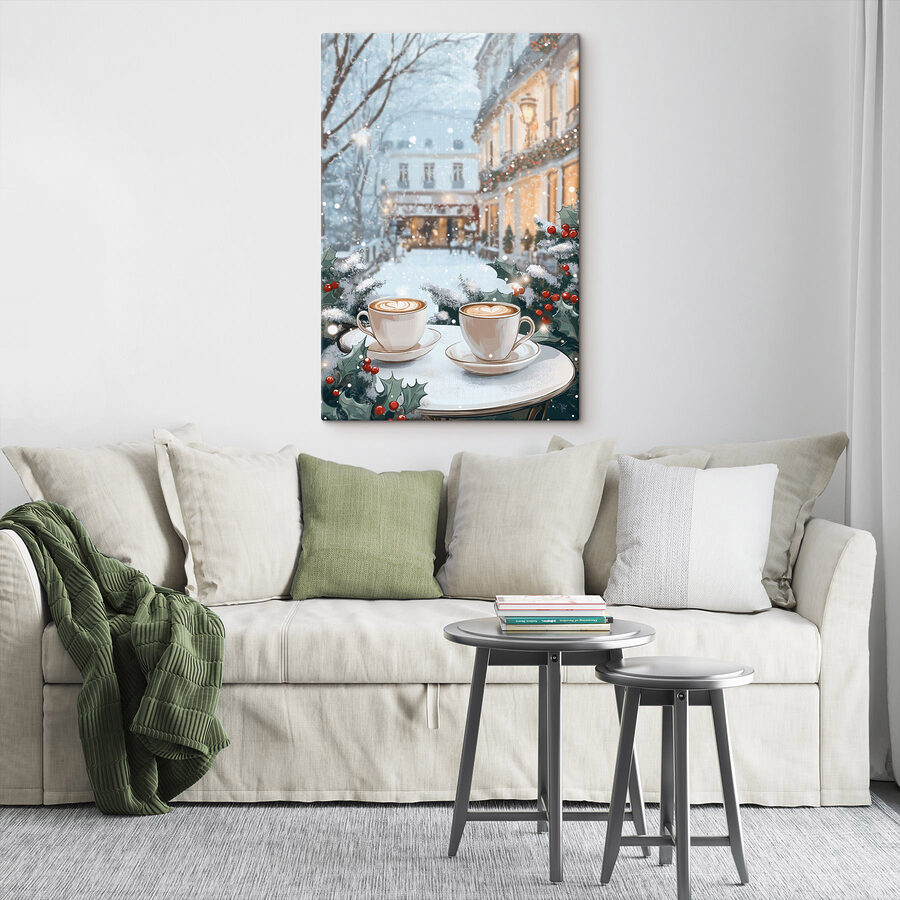 Réchauffez n’importe quelle pièce avec cette charmante impression sur toile représentant deux tasses de café posées sur une table, encadrées par une rue enneigée. On se croirait dans une scène tirée d’un film de Noël, qui vous invite à imaginer le bruit feutré de la neige qui tombe dehors et le délicieux arôme du café frais qui flotte dans l’air. Imaginez-vous blotti dans votre couverture préférée, savourant cette première gorgée tandis que le monde extérieur scintille. Parfaite pour tous ceux qui aiment ajouter une touche de chaleur à leur décoration, cette impression capture un moment de joie simple, ce qui en fait un ajout ravissant à tout intérieur. C’est une œuvre d’art qui n’est pas seulement agréable à regarder, mais qui touche également le cœur. Parfaite pour les amateurs de café ou tous ceux qui ont besoin d’une escapade hivernale.