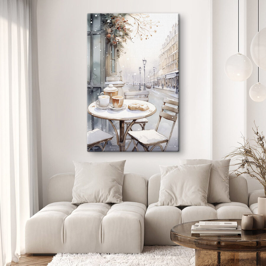 Imaginez que vous sirotiez votre café du matin dans un café confortable, la neige tombant doucement à l’extérieur, tandis que des croissants feuilletés vous tentent depuis la table. Cette impression sur toile capture ce moment exact, parfait pour tous ceux qui apprécient la bonne cuisine et les moments chaleureux. C’est comme une petite fenêtre sur une scène hivernale qui invite à la rêverie et au confort. Accrochez-le dans la cuisine, et c’est comme si l’arôme des pâtisseries fraîches remplissait la pièce, rendant chaque matin spécial. Ce n’est pas seulement de l’art, c’est une expérience qui illuminera votre espace et fera vibrer vos papilles gustatives.