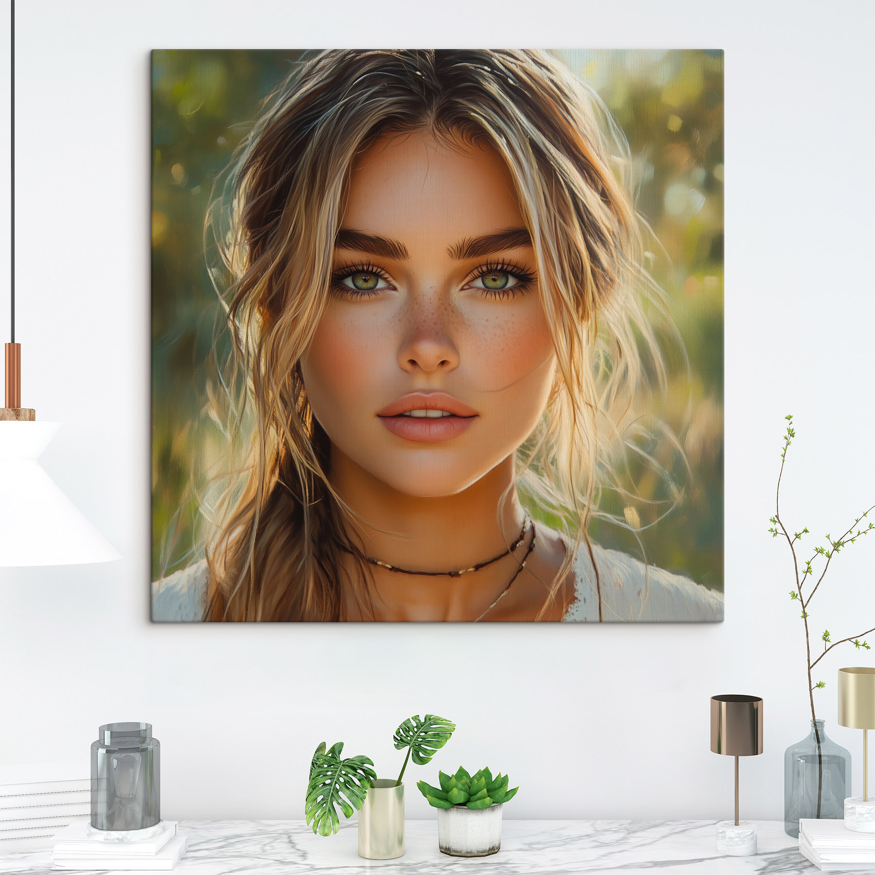 Transformez n’importe quel mur en une histoire avec cette captivante impression sur toile d’une femme aux yeux verts envoûtants et aux taches de rousseur enjouées. C’est comme si elle jetait un coup d’œil dans votre âme, invitant la chaleur et une pincée de fantaisie dans votre espace. Que ce soit dans le salon ou dans un coin douillet, cette pièce insuffle vie et caractère, suscitant conversations et sourires. Imaginez que vous sirotiez un café et que vous vous perdiez dans ces yeux enchanteurs – il est certain qu’ils pourraient raconter une ou deux histoires. Il ne s’agit pas d’un simple décor, mais d’une expérience qui ne demande qu’à être vécue. Parfait pour ajouter une touche d’originalité !