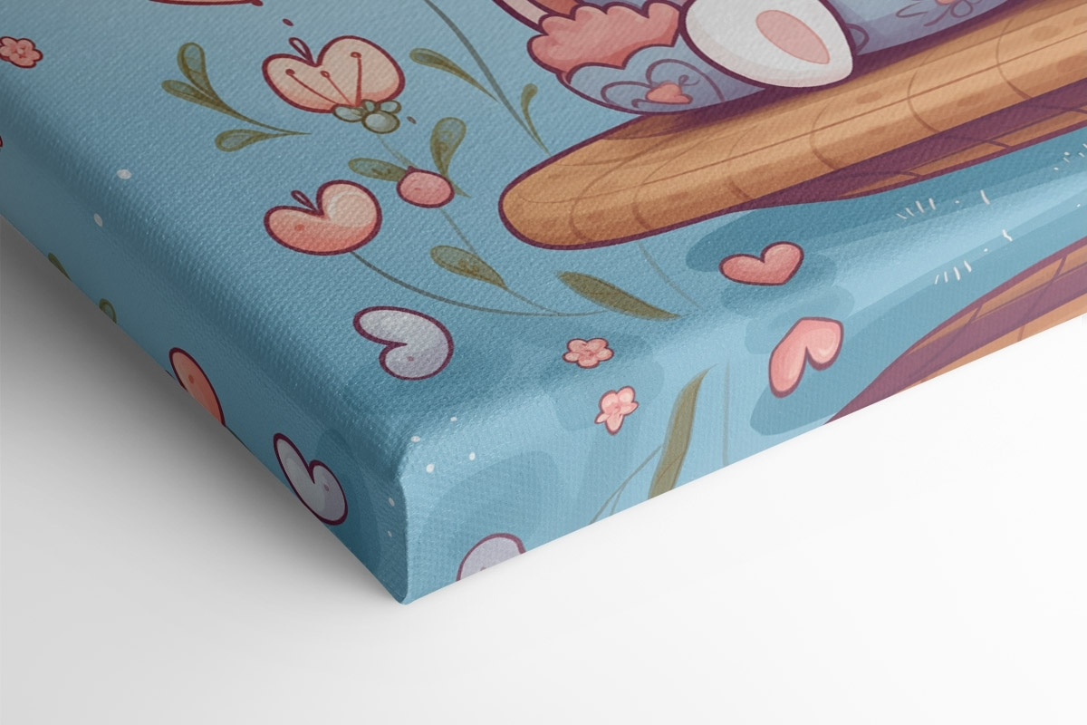 Meet a delightful duo that’s sure to warm your heart! This charming canvas print features a couple of bunnies cozied up on a tray, sharing a cup of tea like they’re the best of friends. Surrounded by sweet blooms and hearts, it’s a scene that feels like a cozy afternoon in a sunlit space. Imagine this playful artwork brightening up a nursery, bringing smiles to every visitor. Perfect for animal lovers or anyone needing a splash of joy, these little bunnies might just inspire a moment of relaxation—or a teacup talk about all things fluffy. Who can resist that?