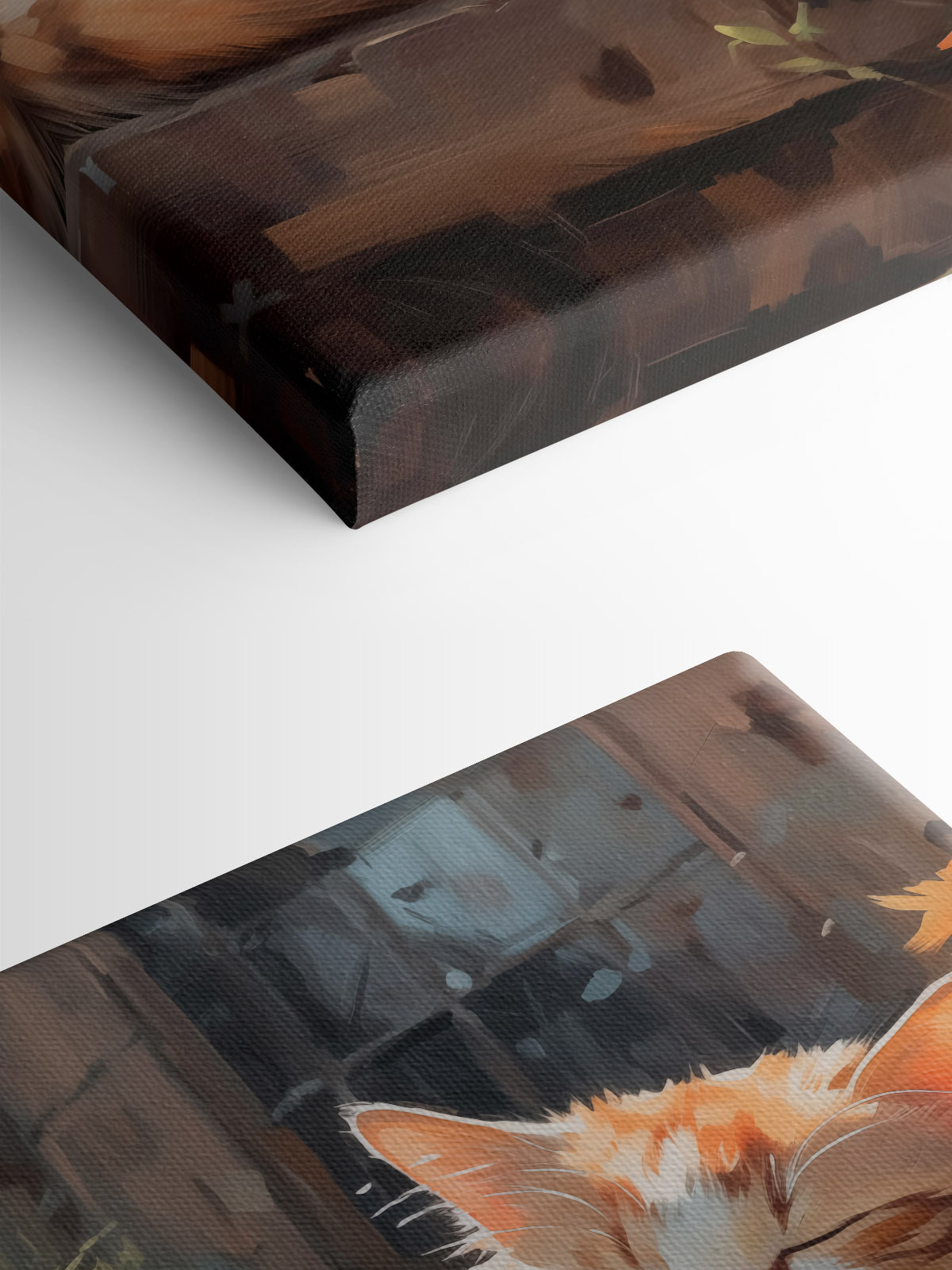 Imaginez un après-midi ensoleillé, où le monde extérieur ralentit légèrement. Cette impression sur toile, « Cat Lying on a Ledge » (Chat allongé sur un rebord), capture parfaitement cette ambiance détendue. Avec son pelage orange doux et son expression de pur contentement, ce chat semble rêver de chasser des papillons ou peut-être de planifier son prochain vol de collation. La végétation luxuriante et la lumière chaude du soleil apportent une touche joyeuse à n’importe quelle pièce, la rendant confortable et accueillante. Accrochez-la dans votre salon, et c’est comme si vous accueilliez un ami à fourrure qui sait toujours comment faire la sieste. C’est le genre d’œuvre d’art qui vous fait sourire, comme un doux rappel de prendre un moment pour respirer. Et puis, qui n’aime pas les chats qui ont l’air si détendus ?
