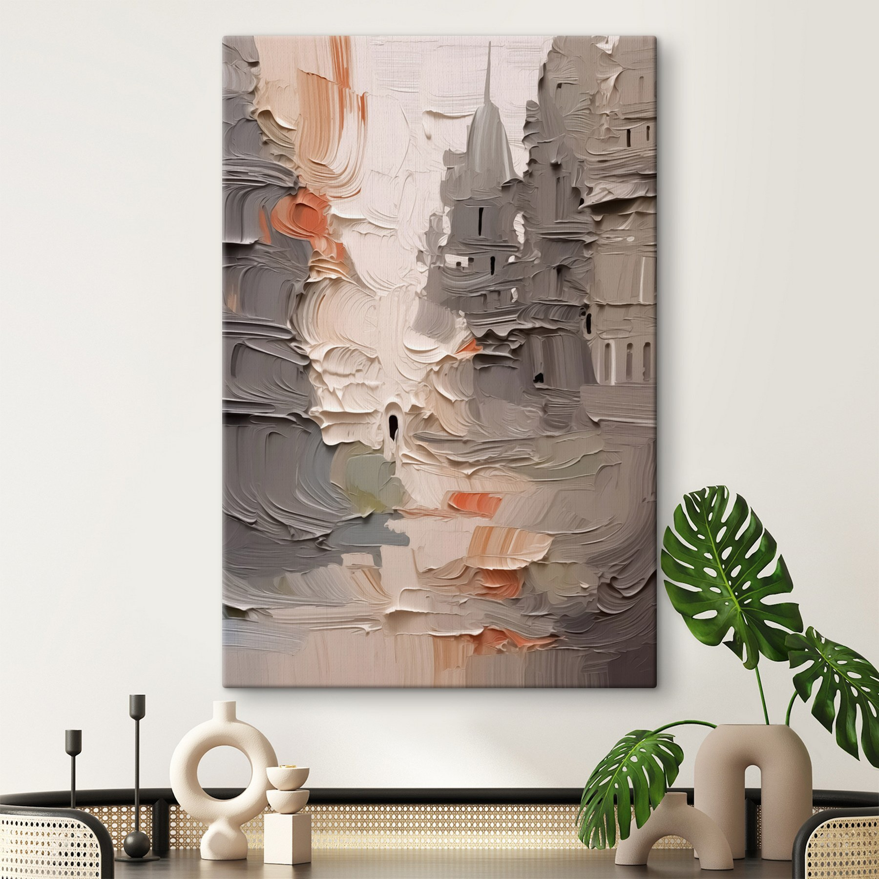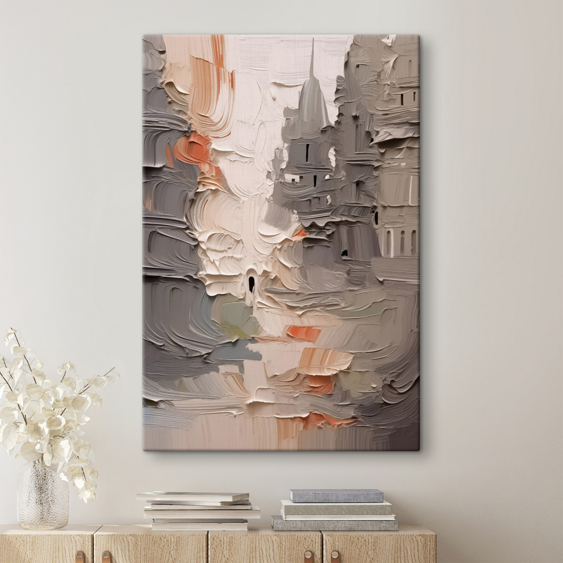 Cette superbe impression sur toile représentant un bâtiment apporte une touche artistique à n’importe quel espace. Imaginez-vous entrer dans une pièce et être accueilli par un jeu vibrant de couleurs et de textures qui semblent danser sur le mur. Les teintes douces et crémeuses se marient à merveille, invitant à la sérénité, tandis que les petites touches de couleur apportent de la vivacité.