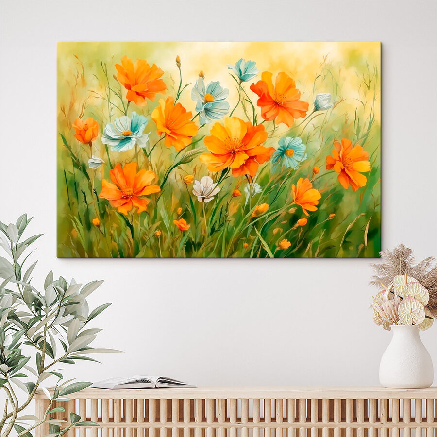 Égayez n’importe quel espace avec cette magnifique impression sur toile représentant des fleurs orange vif et blanches délicates. C’est comme une garden-party, mais sans les moustiques ! Chaque fleur rayonne de chaleur, apportant une sensation de joie et de sérénité dans votre maison. Imaginez-la accrochée dans un coin confortable, où vous prenez votre café du matin et vous imprégnez simplement de sa beauté. Parfaite pour embellir un salon ou ajouter une touche de couleur à une chambre. Cette œuvre ne se contente pas d’être accrochée au mur, elle fait entrer la nature dans votre intérieur, sans effort. Qui aurait cru que les fleurs pouvaient être d’aussi bonne compagnie ?