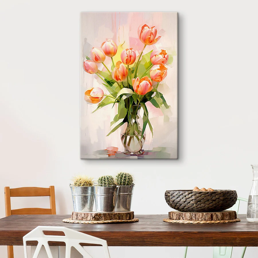 Illuminez n’importe quelle pièce avec cette superbe impression sur toile, “Vase de fleurs”. C’est comme si vous apportiez un bouquet frais à l’intérieur, sans les éternuements ! Les tulipes d’un rose tendre dansent de façon ludique sur un fond de rêve, apportant une touche de couleur et de gaieté. Imaginez que vous entrez dans votre espace et que vous vous sentez instantanément revigoré. Placez-la dans un coin confortable et regardez-la devenir un sujet de conversation. Que ce soit pour le salon ou le bureau à domicile, cette œuvre d’art crée une atmosphère chaleureuse et accueillante qui rappelle le printemps tout au long de l’année. Parfait pour ceux qui ont un faible pour la nature !