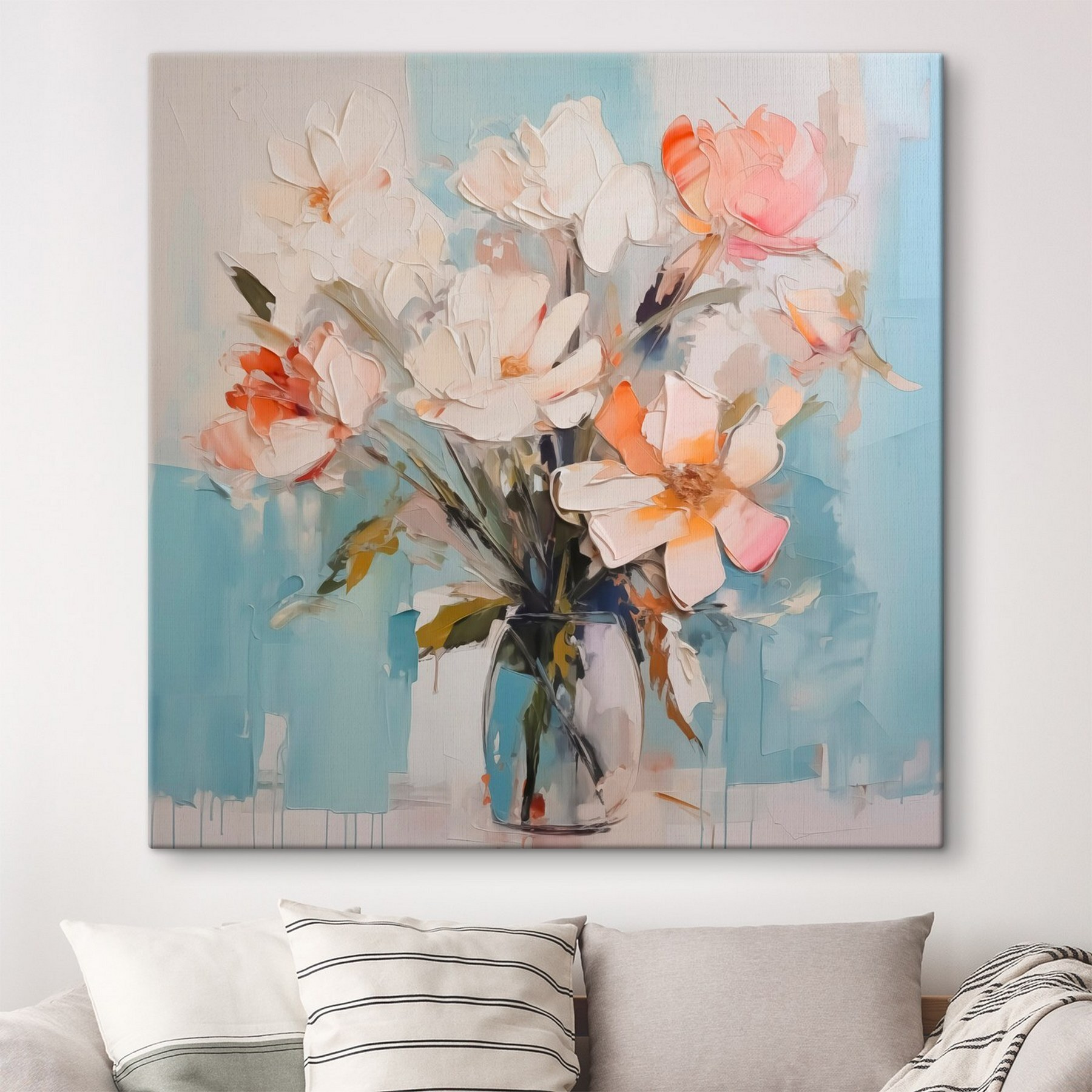 Transformez n’importe quel espace avec cette vibrante impression sur toile de fleurs dans un vase. Imaginez que vous entrez dans une pièce et que vous êtes accueilli par une explosion de pétales et de couleurs vives – c’est comme si un petit jardin vous accueillait chez vous. Les pastels doux dansent sur un fond bleu froid, créant une ambiance sereine. Chaque coup d’œil sur cette pièce peut vous faire sourire ou même vous faire rêver à des jours ensoleillés. Parfaite pour égayer un coin tranquille ou donner du cachet à un recoin douillet, c’est une touche délicieuse qui évoque la chaleur et le charme. Qui n’aimerait pas un peu de nature à l’intérieur ?