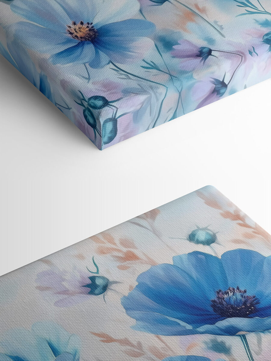 Égayez n’importe quel espace avec cette superbe « impression sur toile Groupe de fleurs bleues ». Imaginez-vous entrer dans une pièce et être accueilli par une brise fraîche de fleurs bleues dansant doucement sur un fond pastel. C’est comme un petit coin de nature, sans le pollen !