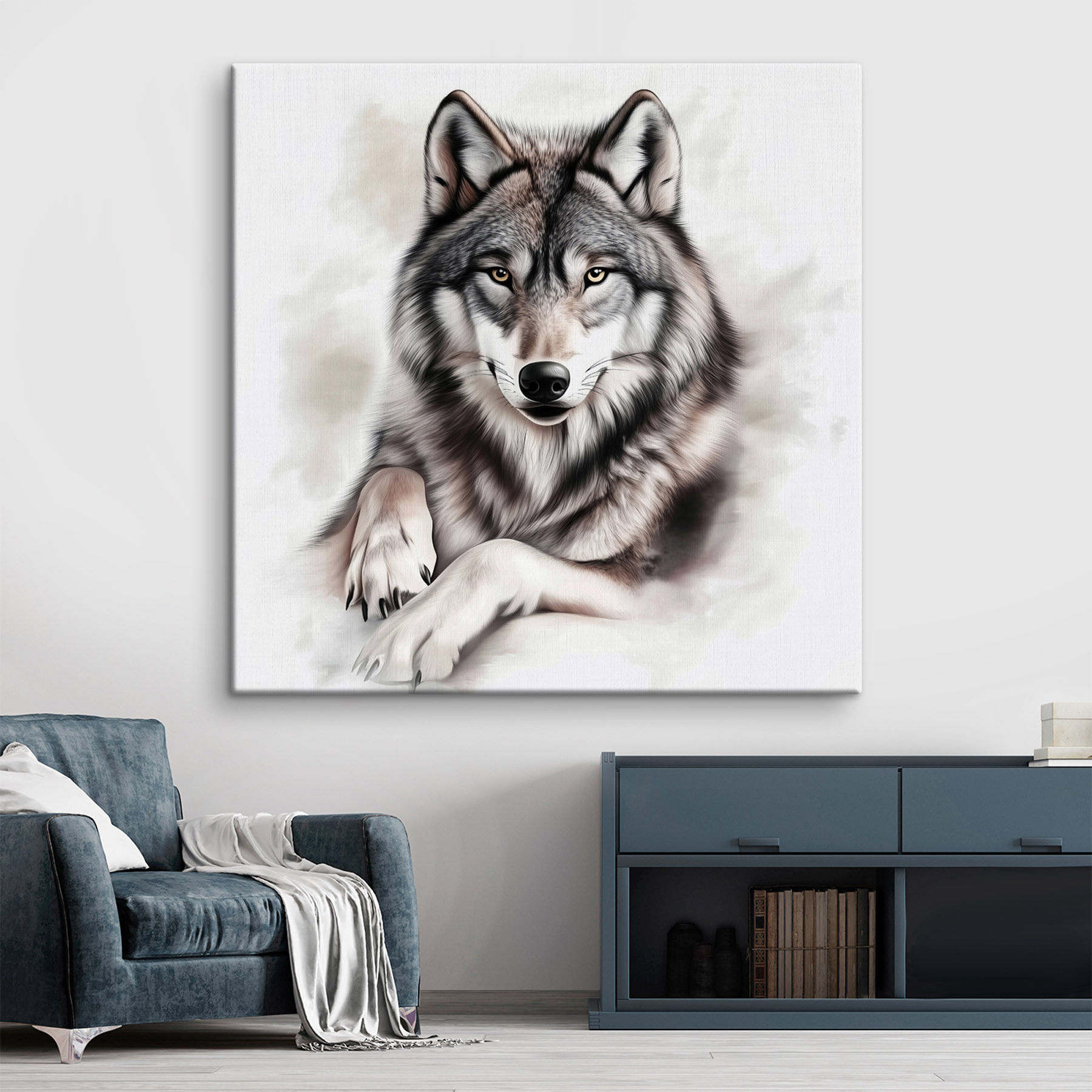 Découvrez un loup majestueux qui deviendra à coup sûr la star de n’importe quelle pièce ! Cette impression sur toile capture le loup en train de se prélasser et de vous lancer un regard irrésistiblement intense, comme s’il connaissait tous vos secrets. Imaginez cette beauté au-dessus d’un canapé confortable ou dans un coin lecture, ajoutant une touche d’élégance sauvage à votre espace. Les teintes douces de l’arrière-plan font ressortir les traits saisissants du loup, ce qui en fait un sujet de conversation idéal. Ce n’est pas seulement de l’art, c’est comme un contact avec la nature directement chez vous. Une touche de nature sauvage, une touche de personnalité… Qui ne voudrait pas que cette créature captivante veille sur lui ?