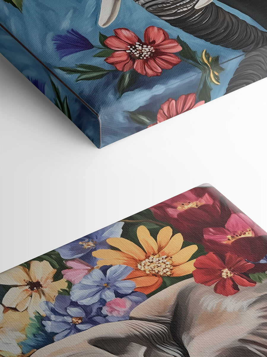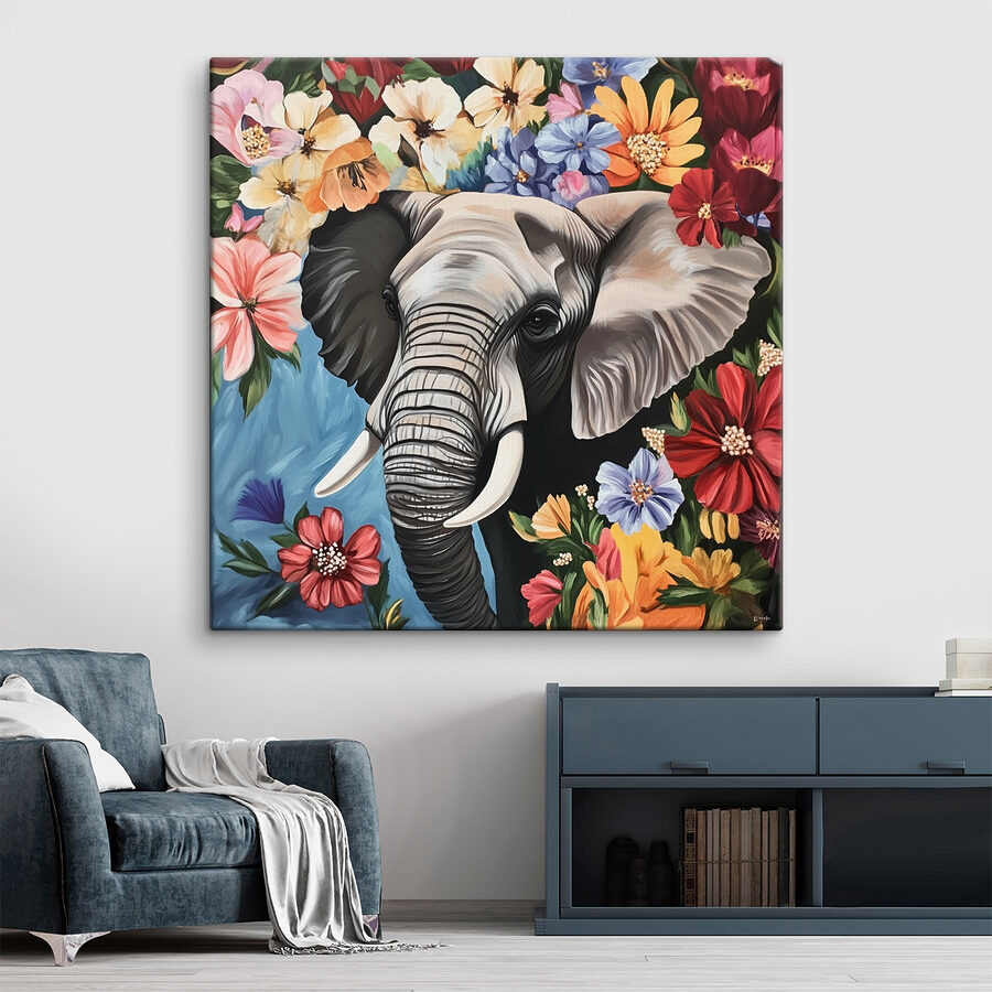 Imaginez un coin confortable dans votre salon, égayé par la beauté audacieuse de « An Elephant with Tusks in a Flower Garden » (Un éléphant avec des défenses dans un jardin fleuri). Cette impression sur toile déborde de vie, mettant en scène un éléphant majestueux qui jette un œil à travers une profusion de fleurs colorées. C’est comme si vous apportiez un morceau de savane dans votre maison, sans avoir besoin de vous équiper pour un safari. Le mélange de tons terreux et de pétales vibrants crée une ambiance joyeuse, ce qui en fait un élément parfait pour attirer l’attention de vos invités. Imaginez-la accrochée dans la salle à manger, suscitant des conversations pendant le dîner, ou dans la chambre d’un enfant, stimulant son imagination alors qu’il rêve d’aventures. Elle rappelle avec délice la splendeur de la nature et la joie simple des couleurs, injectant un peu de sauvagerie dans votre espace quotidien. De plus, qui ne voudrait pas être accueilli chaque matin par un géant aussi gentil ?