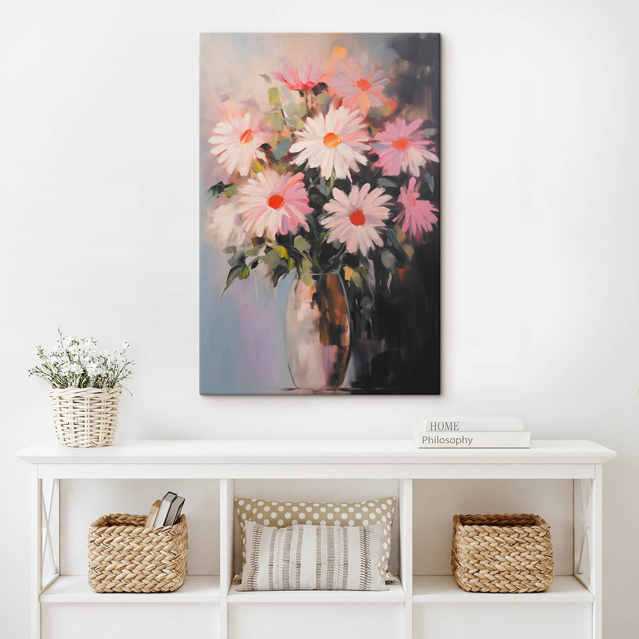 Transformez votre espace avec cette ravissante impression sur toile de fleurs dans un vase. C’est comme si vous apportiez un jardin à l’intérieur sans avoir à l’arroser ou à le désherber ! Les douces fleurs se détachent sur l’arrière-plan de rêve, ce qui améliore instantanément l’ambiance. Imaginez que vous vous détendiez un dimanche après-midi, en sirotant un café, et que vous vous perdiez dans les couleurs douces qui illuminent votre salon ou votre chambre. Il est parfait pour tous ceux qui aiment une touche de nature, même s’il est simplement accroché au mur. Une petite touche de charme floral, et qui sait ? Il pourrait bien faire naître vos rêves de jardinage les plus fous, ou au moins vous rappeler de vous arrêter et de sentir les fleurs.