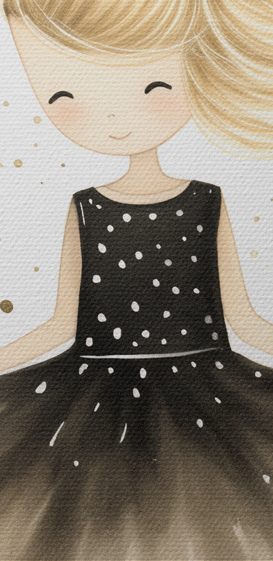 Transformez n’importe quel espace avec cette ravissante impression sur toile “Fille en tutu”. Imaginez une scène charmante qui apporte instantanément de la joie – une gentille fille dans un tutu virevoltant, qui tourne comme si elle dansait avec les étoiles. C’est comme une petite explosion de bonheur sur votre mur, murmurant des histoires de rêves et d’aventures. Parfait pour une chambre d’enfant ou même un coin lecture confortable, il est accueillant et ludique. Vous vous asseyez avec une tasse de thé ? Cet imprimé vous permet de rêver. Laissez-la éveiller votre imagination et illuminer vos murs. N’est-ce pas tout simplement magique ?