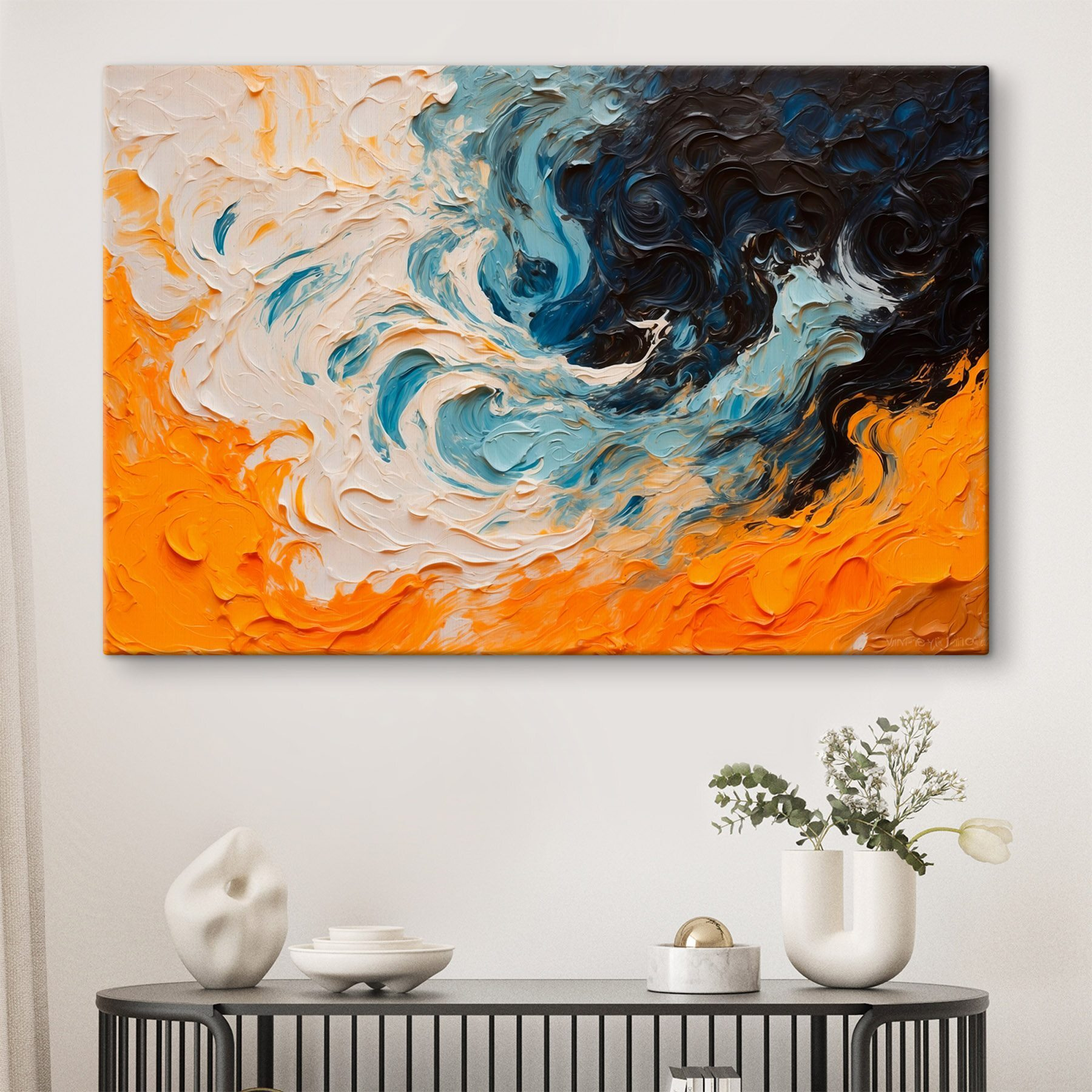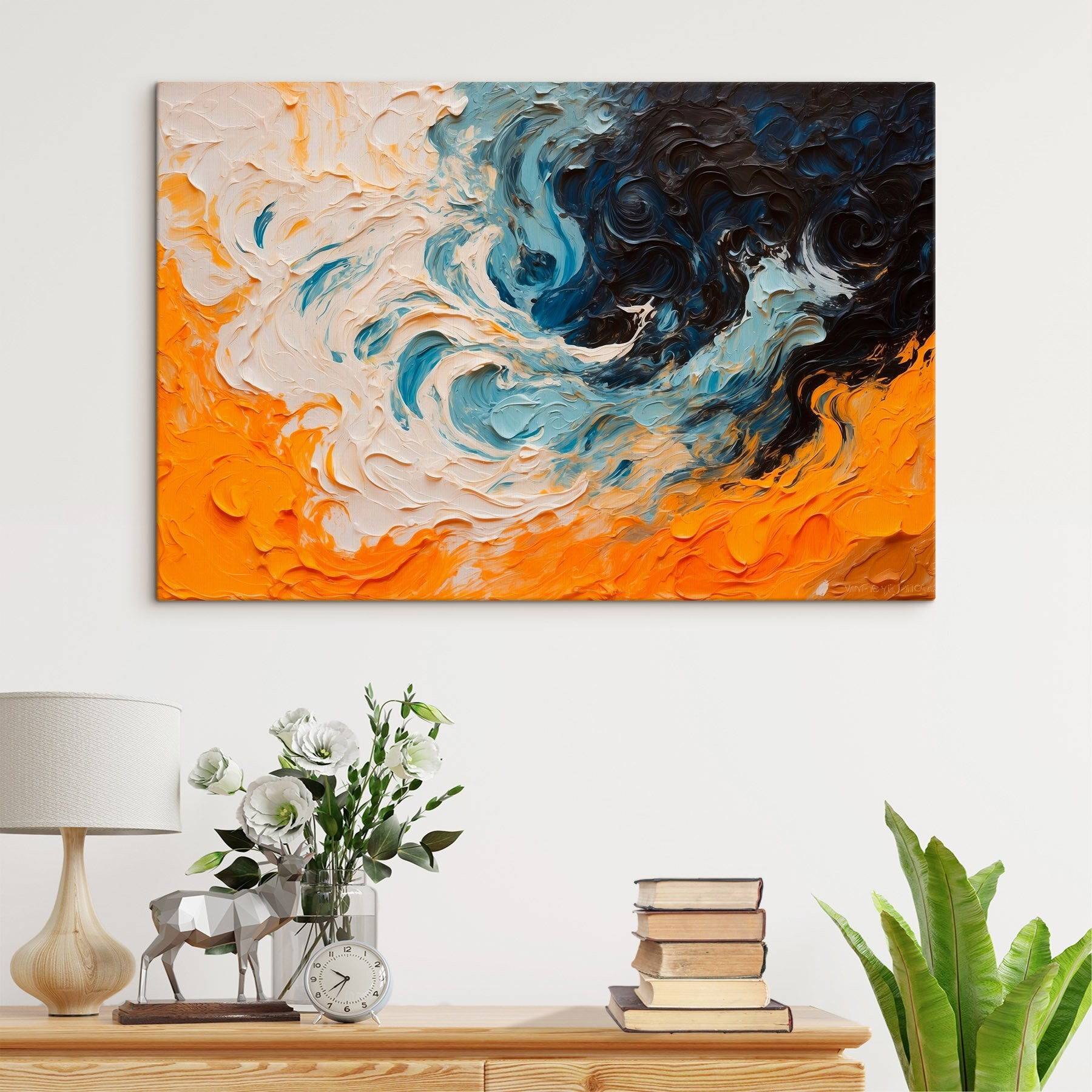 Plongez dans une vibrante explosion de couleurs avec cette impression sur toile qui semble tout droit sortie du rêve d’un artiste. Chaque tourbillon capture un monde d’émotions, vous incitant à explorer l’interaction fascinante des bleus profonds, des oranges chauds et des crèmes douces. Imaginez un après-midi confortable, en sirotant un café, pendant que cette œuvre d’art stimule votre imagination – peut-être même qu’elle vous inspire une danse spontanée dans votre salon. Parfait pour un mur d’accent ou pour ajouter une touche de gaieté à n’importe quel espace, c’est un véritable stimulant pour l’humeur. Préparez-vous à laisser vos murs parler !