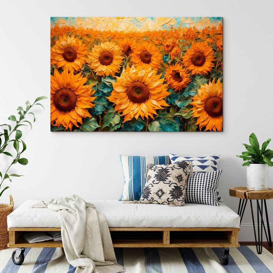 Illuminez n’importe quel mur avec cette superbe impression sur toile de tournesols pris dans la lumière dorée de l’après-midi. Imaginez : la chaleur du soleil qui se répand dans votre espace, le transformant instantanément en une joyeuse retraite d’été – aucune crème solaire n’est nécessaire. Ces fleurs vibrantes se dressent, créant une ambiance invitante qui pourrait même vous donner envie d’organiser un pique-nique dans votre salon. Que ce soit dans un coin confortable ou comme point central au-dessus du canapé, cette pièce ajoute une touche de joie de la nature sans un soupçon de pollen. C’est comme une journée ensoleillée, tout au long de l’année. Parfait pour tous ceux qui veulent une touche de couleur et de bonheur !