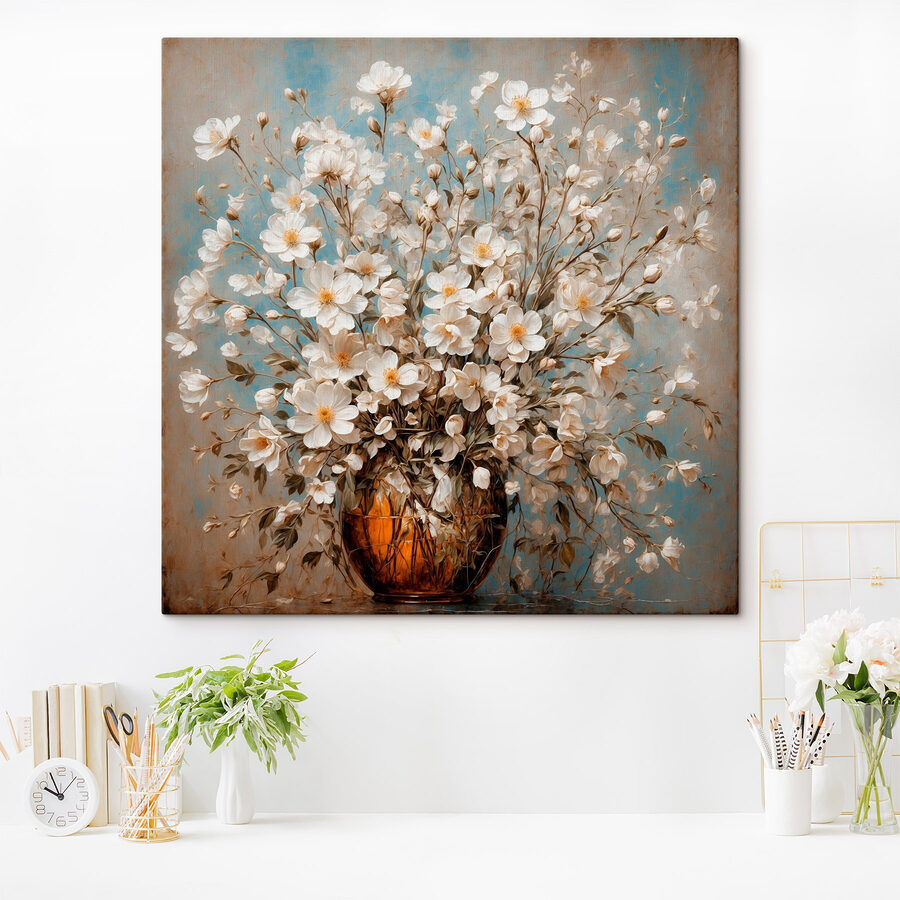 Illuminez n’importe quel espace avec le charmant “Vase de fleurs blanches imprimé sur toile”. Cette pièce joyeuse apporte une touche de nature à l’intérieur, ce qui la rend parfaite pour ceux qui veulent inviter un peu de fraîcheur dans leur maison. Imaginez-la sur le mur d’un salon, où elle pourrait susciter une ou deux conversations, comme se demander si ces fleurs sentent aussi bon qu’elles en ont l’air.