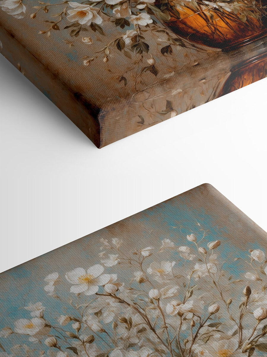 Les fleurs d’un blanc tendre se détachent sur un fond paisible, créant un sentiment de calme. C’est comme si vous aviez un petit jardin chez vous, sans avoir besoin d’avoir la main verte. Accrochez-le au-dessus d’un coin lecture confortable ou dans un couloir lumineux, et soudain, l’espace se sentira vivant. Qui aurait cru que l’art pouvait murmurer une si douce simplicité ? Parfait pour les amoureux des fleurs, ou pour tous ceux qui cherchent à rehausser leur décoration d’une touche d’élégance.