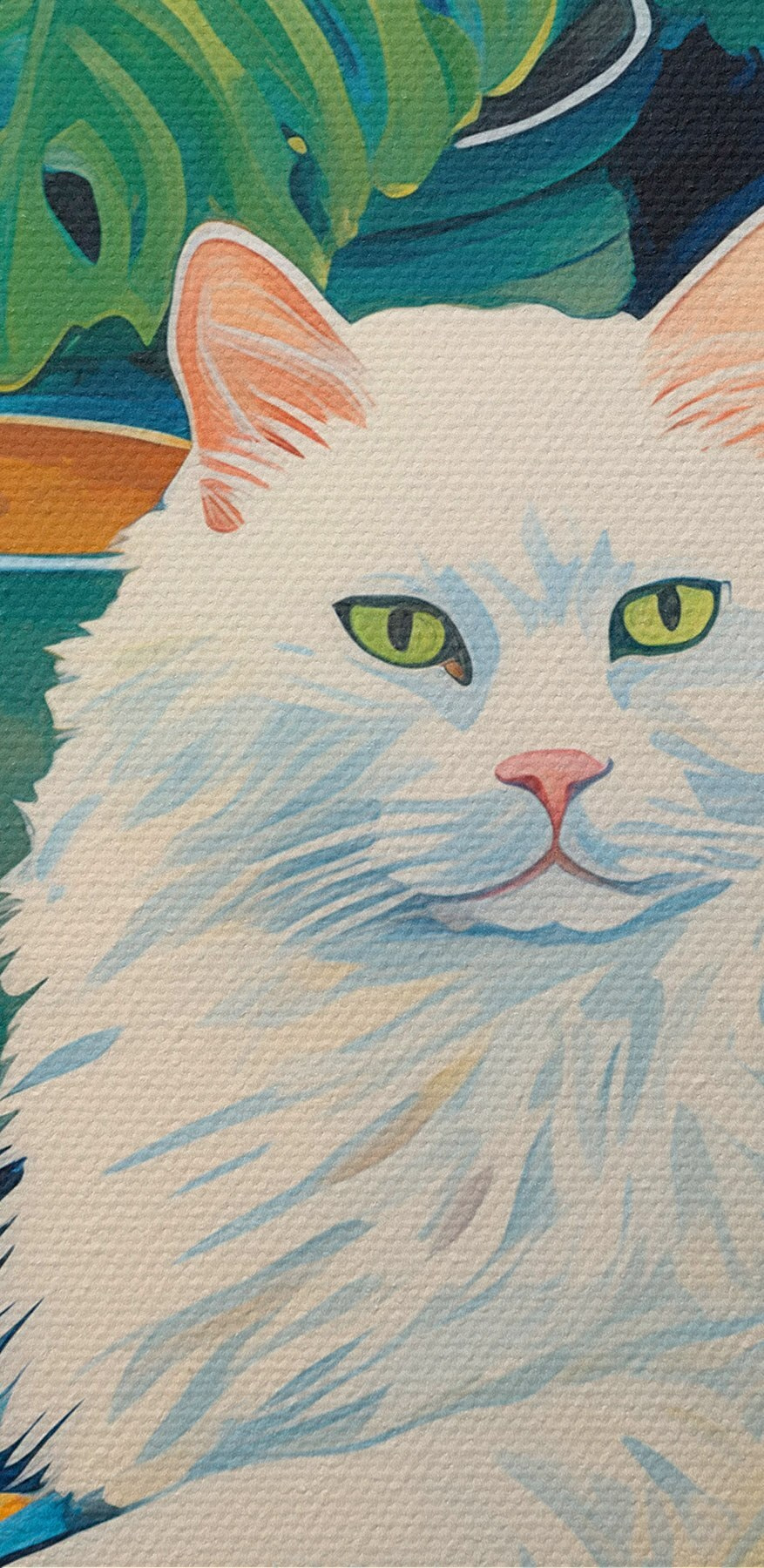 Meet the canvas print that’s about to catapult your living space into a cozy retreat—”Cat Lying on a Couch.” This beaut captures a fluffy feline just chillin’ on a vibrant couch, surrounded by lush plants. It’s like a little slice of calm and whimsy, perfect for brightening up any corner. Imagine coming home after a long day, flopping onto the couch, and being greeted by this serene scene. It’s like having a furry friend there, minus the shedding! Plant lovers will adore the splashes of green, too. Perfect for anyone who’s got a soft spot for pets or just wants to add a touch of cozy charm.