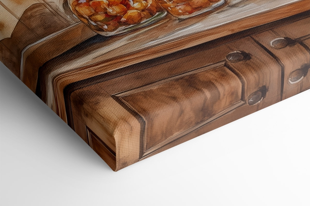 Apportez une tranche de vie de cuisine douillette dans n’importe quelle pièce avec cette impression sur toile à l’aquarelle. Imaginez des bocaux remplis de conserves éclatantes, posés confortablement sur le rebord d’une fenêtre ensoleillée, attendant de vous emmener dans une matinée sereine à la campagne. Les couleurs douces et les légers coups de pinceau confèrent à ce tableau une chaleur accueillante, comme le parfum d’une tarte aux pommes fraîche qui flotte dans l’air. Il est parfait pour les amateurs de cuisine ou les amoureux de la nature, car il suscite de petites rêveries sur les recettes maison ou les après-midi passés à cueillir des produits frais. Cette pièce s’intègre facilement dans n’importe quel espace, ajoutant une touche de charme sans se fatiguer.
