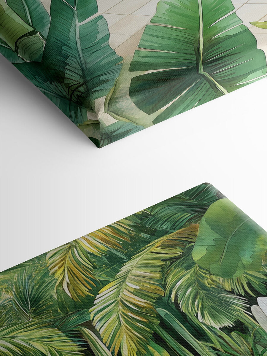 Entrez dans un paradis de brise avec cette impression sur toile qui capture une scène de piscine sereine. Imaginez ces chaises longues confortables, qui n’attendent que quelqu’un pour se détendre, siroter une boisson fraîche et profiter du soleil. Des planches de surf se trouvent à proximité, prêtes pour des aventures spontanées. Il ne s’agit pas seulement d’une scène, mais d’une ambiance. La verdure luxuriante apporte une touche de vie, enveloppant l’espace dans l’étreinte de la nature. Imaginez comment cette œuvre d’art peut donner à n’importe quelle pièce l’impression d’être un lieu de vacances, invitant à la détente et aux rêveries ensoleillées. Parfait pour apporter une touche de joie et d’extérieur à l’intérieur !