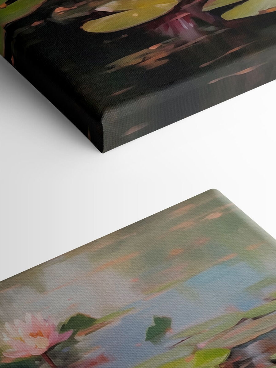 Plongez dans une évasion sereine avec cette toile d’art enchanteresse, capturant des fleurs roses délicatement perchées sur des nénuphars. Elle évoque des après-midi tranquilles, où la nature danse dans de douces ondulations et où la lumière du soleil scintille à travers les feuilles. Imaginez cette œuvre sur votre mur, créant instantanément une atmosphère chaleureuse, idéale pour rêvasser ou siroter une tasse de thé bien chaude. Chaque regard invite à un moment de calme, et il est difficile de résister à l’envie de s’accorder un petit moment de tranquillité, juste pour apprécier la beauté de l’œuvre. C’est comme si vous faisiez entrer une tranche de vie paisible de l’étang dans votre maison !