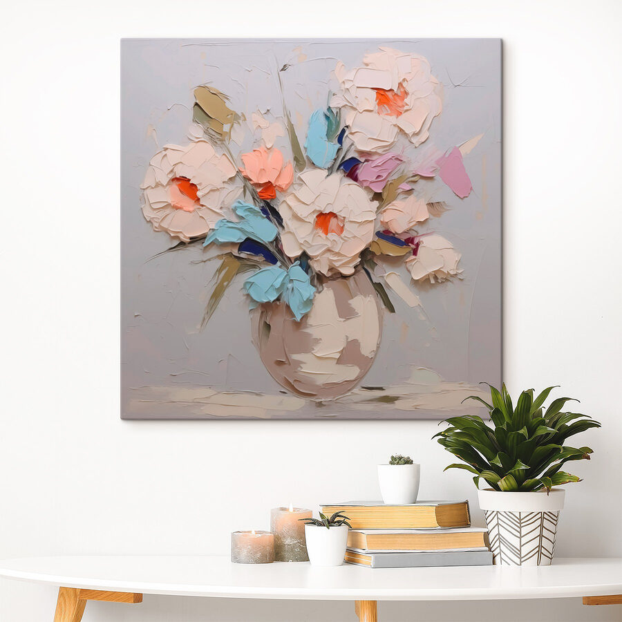 Transformez votre espace avec cette impression sur toile représentant un charmant bouquet de fleurs dans un vase. C’est comme si vous apportiez un peu de printemps dans votre maison, quelle que soit la saison. Imaginez que vous sirotiez votre café du matin pendant que ces couleurs vibrantes illuminent votre journée. Les pastels doux sont un régal pour les yeux, et cette touche ludique d’orange ? De la joie à l’état pur. Parfait pour un salon confortable ou un coin joyeux, il pourrait bien susciter une ou deux conversations. De plus, qui n’aime pas un peu de charme floral pour détendre l’atmosphère ? Tout est dans ces petits moments, n’est-ce pas ?