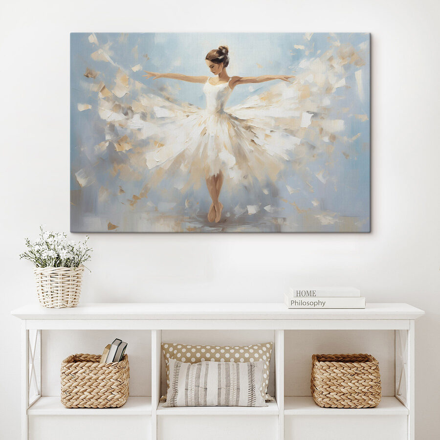 Imaginez que vous pénétrez dans un espace qui semble plus léger, comme si l’air avait été saupoudré d’un peu de magie. Cette impression sur toile représente une femme vêtue d’une robe blanche fluide, virevoltant gracieusement comme si elle était perdue dans un moment de bonheur. Les teintes douces se marient à merveille, apportant une touche de sérénité à n’importe quelle pièce. C’est le genre d’œuvre d’art qui parle quand les mots manquent. Imaginez-la au-dessus d’un coin lecture confortable ou sur un mur d’exposition : les amis seront attirés et elle deviendra soudain un sujet de conversation ! Parfait pour ceux qui apprécient l’élégance sans fioritures. Il peut ajouter un peu de chaleur ou inspirer des rêveries, faisant de chaque regard une douce évasion.