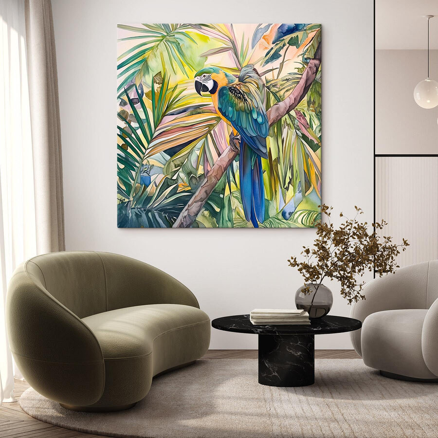 Apportez une touche de nature dans n’importe quelle pièce avec cette impression sur toile vibrante représentant un oiseau coloré perché sur une branche. Les teintes vives et les coups de pinceau ludiques invitent à la tranquillité, ce qui est parfait pour les coins douillets ou les salons animés. Imaginez-vous en train de siroter un café tout en profitant de l’ambiance joyeuse qu’il crée. Vos amis pourraient même dire : “Est-ce une escapade tropicale que je vois ?” Les détails fins du feuillage et le plumage frappant vous entraînent directement dans une évasion sereine. Ajoutez un peu de charme et de couleur à vos murs – cette pièce pourrait bien vous inspirer des rêves de journées ensoleillées et d’aventures dans la jungle. Parfait pour ceux qui aiment les décors uniques !