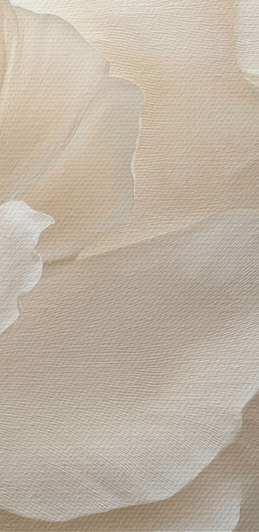 Le revêtement vinylique est une fine couche de PVC appliquée sur un support intissé. La présence de vinyle rend le papier peint résistant aux dommages, permet un nettoyage facile à l’aide d’une éponge humide et donne à la surface une texture gaufrée, ressemblant à un tissu de lin.
