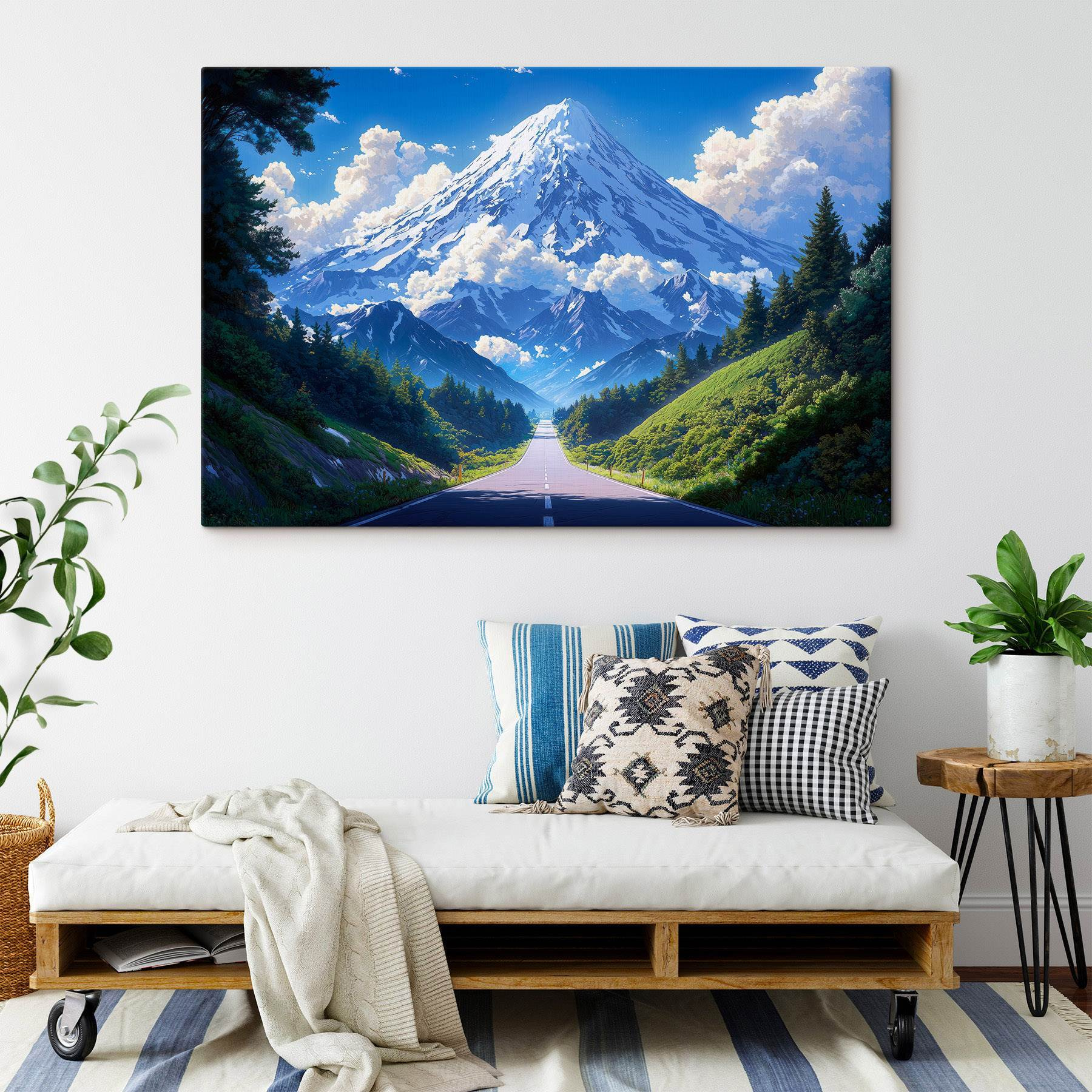 Imaginez un coin douillet de votre maison transformé par cette superbe impression sur toile. Une route sereine serpente vers une montagne majestueuse, invitant l’imagination à faire un petit voyage. C’est comme un rêve éveillé parfait, où chaque regard vous transporte vers l’air frais et des vues à couper le souffle. Les verts éclatants de la forêt contrastent magnifiquement avec les bleus frais du ciel et des sommets enneigés. C’est une touche de nature qui apporte une ambiance paisible à n’importe quel espace. Qu’il s’agisse de votre salon ou d’un espace de travail tranquille, cette pièce suscitera un soupçon d’envie de voyager, rappelant à tous que l’aventure est à portée de main – pas besoin de chaussures de randonnée. Il suffit de s’asseoir, de sourire et de se laisser emporter par la vue !