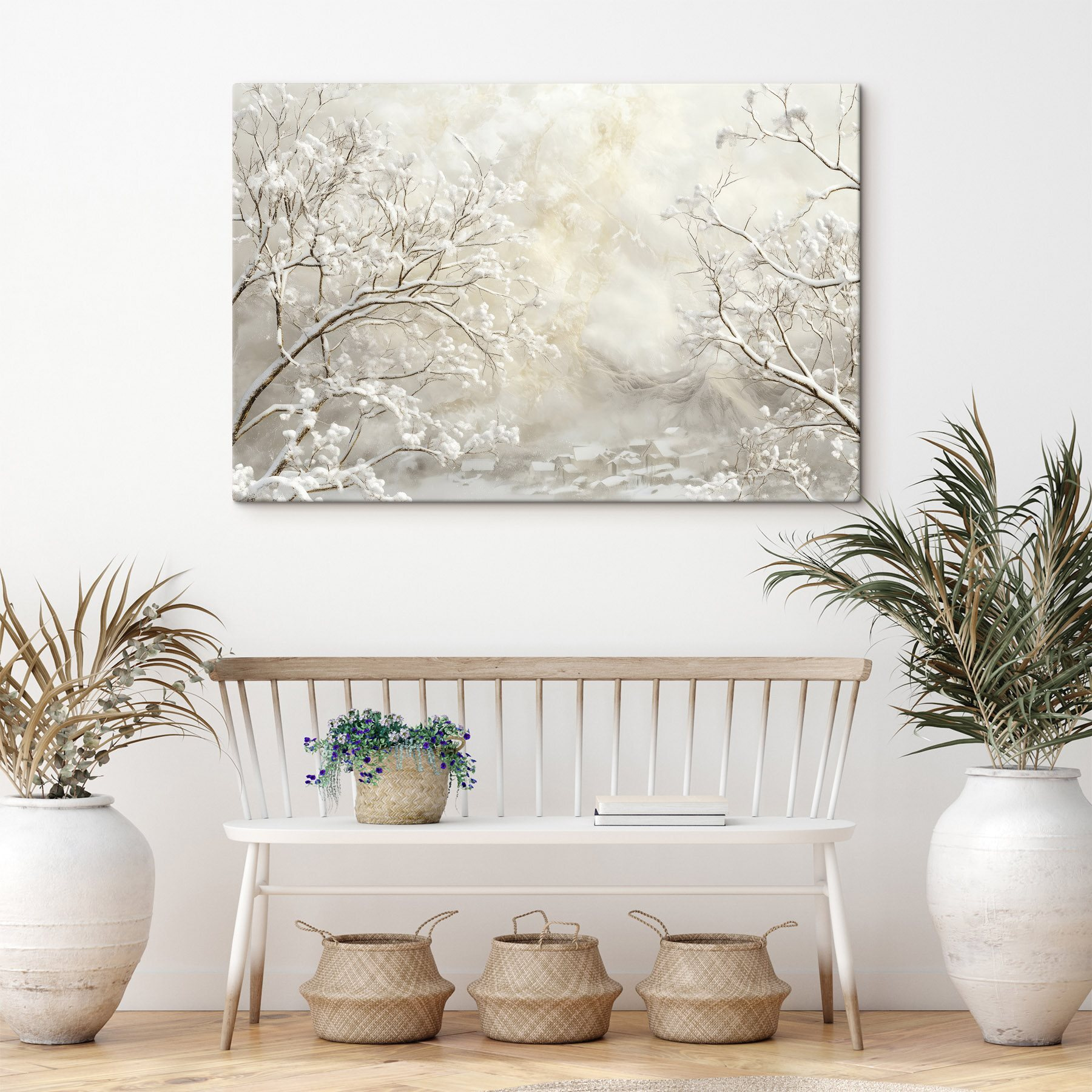 Transformez votre espace avec cette superbe impression sur toile représentant des arbres enneigés nichés dans un paysage de rêve et de neige. Imaginez-vous en train de vous installer confortablement avec une tasse de chocolat, de regarder cette œuvre et de ressentir la fraîcheur de l’hiver – une évasion bienvenue de l’agitation quotidienne. Les teintes douces et les formes légères évoquent une atmosphère paisible, presque magique, parfaite pour n’importe quelle pièce. Que ce soit au-dessus d’une cheminée ou dans un coin tranquille, il apporte une touche de nature à l’intérieur, nous rappelant la beauté de la simplicité. Imaginez : chaque regard est comme une bouffée d’air frais.