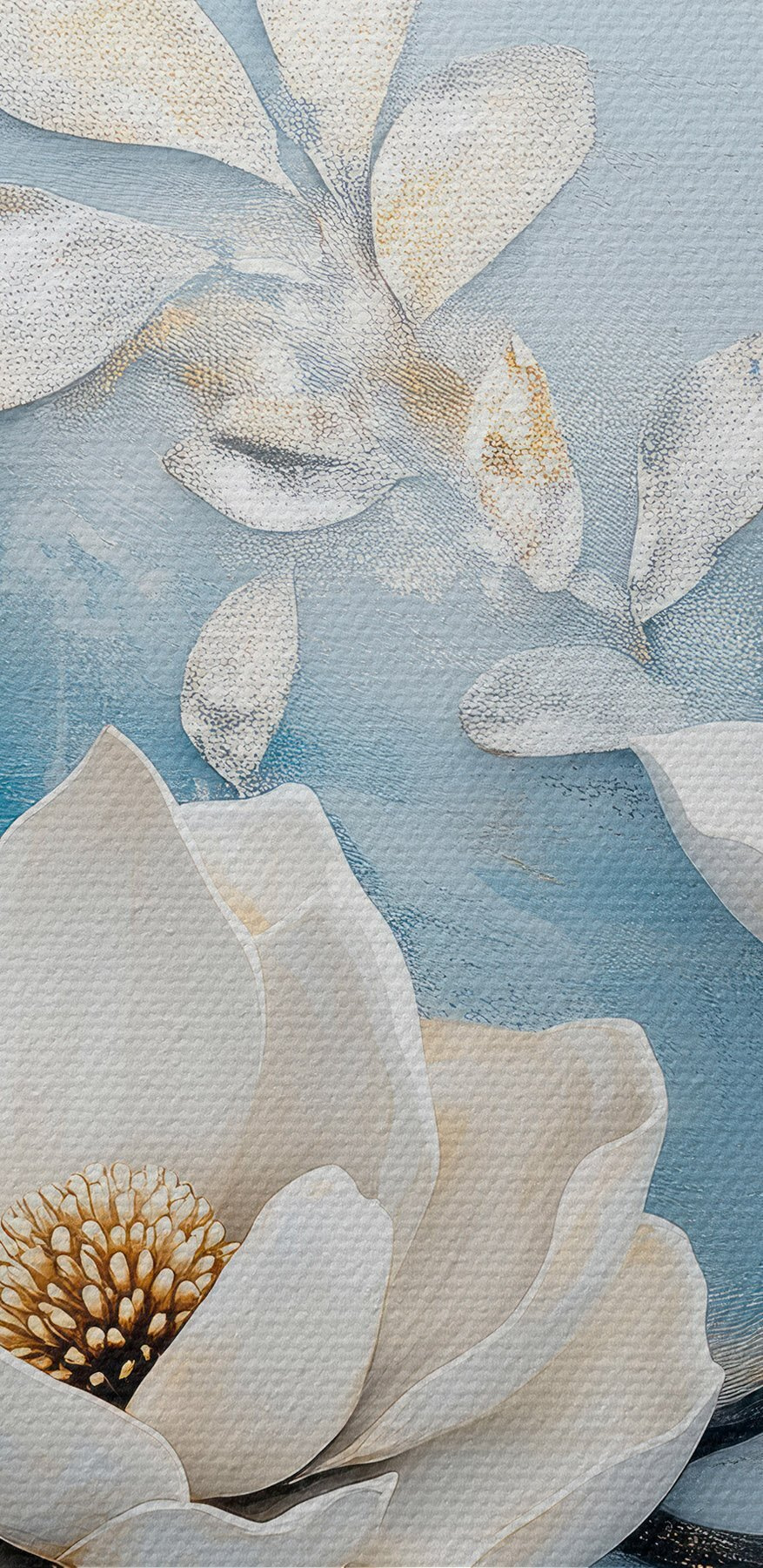 Transformez n’importe quel mur en un lieu d’évasion tranquille grâce à cette superbe impression sur toile représentant des fleurs blanches dansant sur un fond bleu serein. C’est comme si vous apportiez une petite tranche de nature à l’intérieur, sans éternuer le pollen. Imaginez-vous en train de siroter votre café du matin, la lumière du soleil accrochant ces doux pétales, créant une atmosphère douillette et accueillante. Parfaite pour égayer un salon ou ajouter une touche de calme à une chambre, cette œuvre d’art est comme une bouffée d’air frais. Qui ne voudrait pas d’un rappel quotidien de la beauté de la nature chez soi ? De plus, elle ne manquera pas de susciter d’agréables conversations.