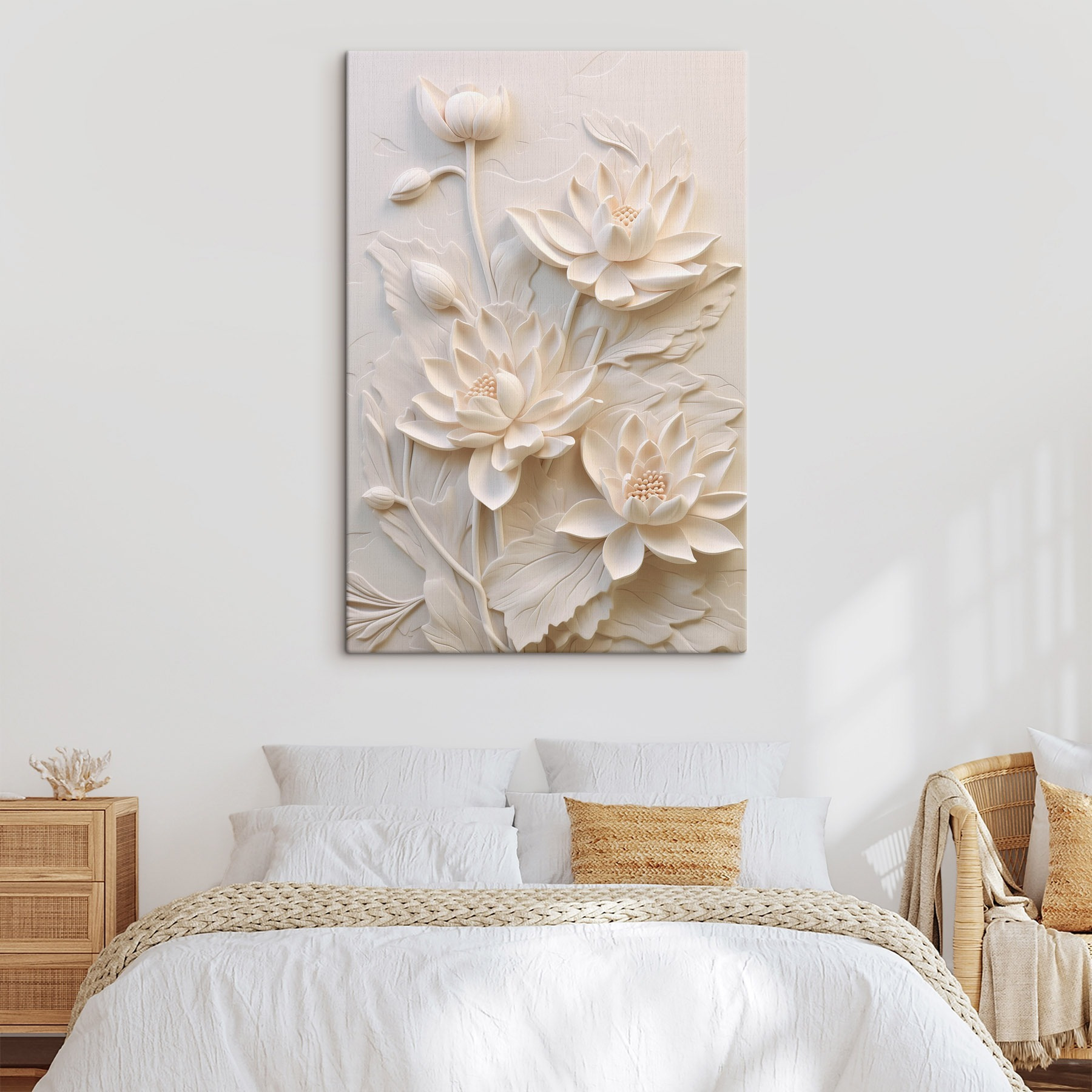 Transformez votre espace avec cette superbe impression sur toile représentant une délicate fleur blanche sculptée qui semble avoir été trouvée dans un jardin serein. Elle est parfaite pour ajouter une touche d’élégance à n’importe quelle pièce. Imaginez que vous passiez devant et que vous ressentiez cette joie tranquille, comme une bouffée d’air frais. Cette pièce s’intègre parfaitement, que ce soit au-dessus du canapé ou dans un coin lecture confortable, invitant à des vibrations calmes. De plus, c’est le genre d’œuvre d’art qui suscite les conversations. Vos amis vous demanderont d’où il vient et vous aurez le plaisir de dire que c’est votre petit coin de paradis floral.