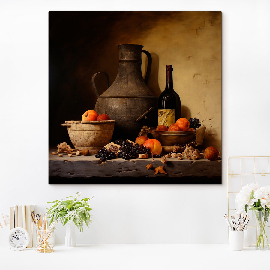 Transformez votre espace avec une touche de charme rustique. Cette impression sur toile, qui représente une délicieuse nature morte de fruits éclatants et une bouteille confortable, invite à la chaleur et à un soupçon de nostalgie. Imaginez cette pièce accrochée dans votre cuisine ou votre salle à manger, suscitant des conversations pendant les repas. C’est comme si vous aviez un marché fermier miniature chez vous, les abeilles et la terre en moins ! Les tons terreux créent une atmosphère réconfortante, parfaite pour les soirées douillettes autour d’un verre de vin. Parfait pour les amateurs de cuisine ou pour tous ceux qui souhaitent ajouter une touche de vie à leurs murs. Plus qu’une simple décoration, c’est une expérience à vivre !