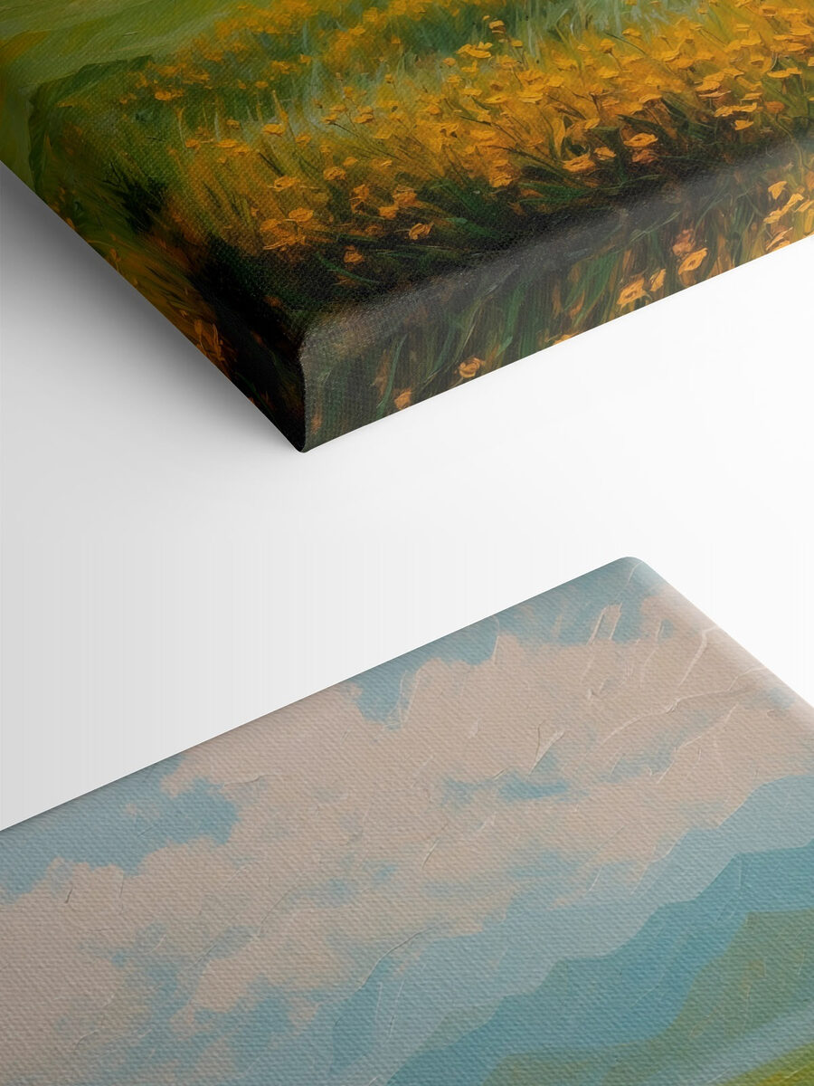 Imaginez que vous pénétrez dans un champ ensoleillé, entouré de fleurs vibrantes qui dansent au gré de la brise. Cette belle impression sur toile apporte cette sensation dans la pièce. Avec les montagnes majestueuses qui se profilent au loin et les teintes douces de la nature, c’est comme si vous aviez un morceau du grand air accroché à votre mur. Parfait pour égayer un coin douillet ou ajouter une touche de couleur à un espace neutre. Vous vous surprendrez peut-être à rêvasser à des après-midi de farniente, où la seule chose à l’ordre du jour est de siroter un thé en regardant les nuages jouer à cache-cache. Les amoureux de la nature adoreront cette pièce, mais honnêtement, qui ne voudrait pas s’évader vers une vue aussi sereine sans quitter sa maison ?