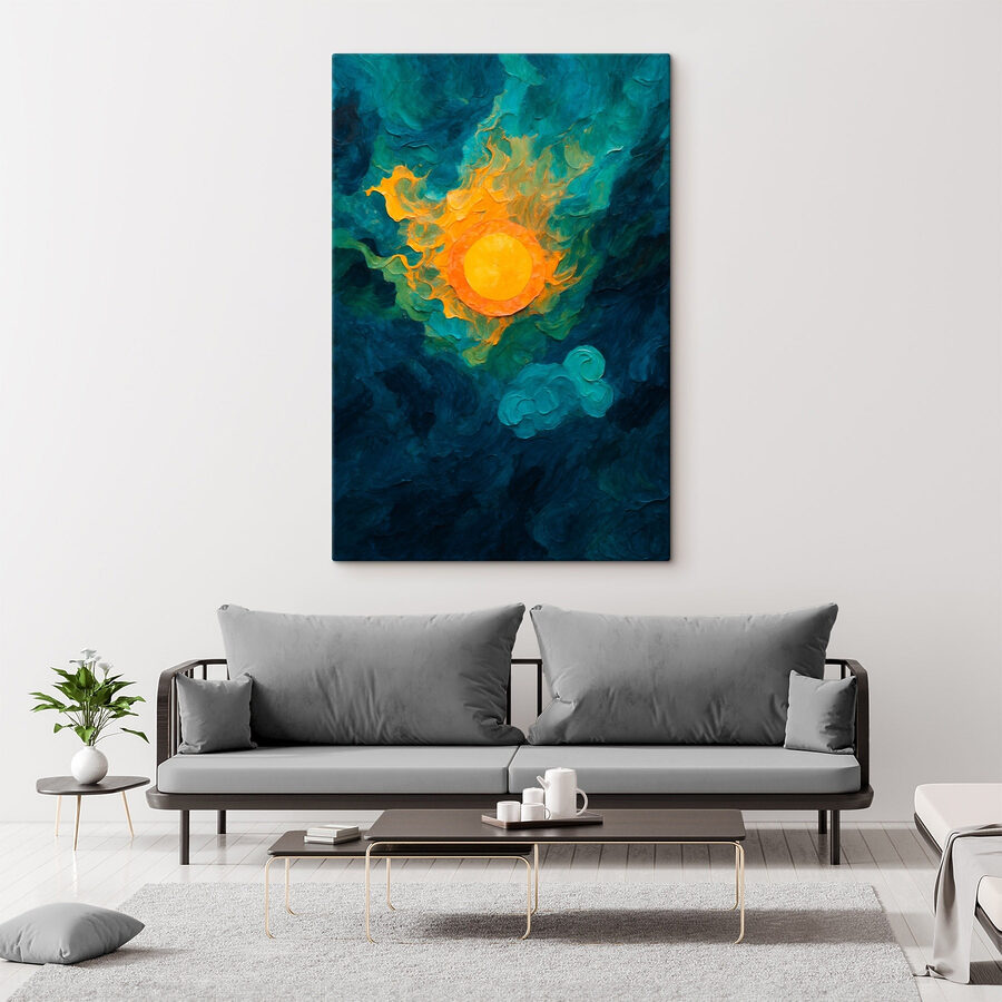 Rehaussez votre espace avec cette superbe impression sur toile, une danse vibrante du soleil et des nuages qui capte l’imagination. Imaginez-la en train d’égayer un coin douillet ou de créer une pièce maîtresse joyeuse dans un salon – un vrai coup de pouce à l’humeur. Les jaunes chauds représentent un soleil enjoué, apportant une touche de joie, tandis que les bleus et les verts tourbillonnants suggèrent un sentiment de calme. C’est comme si l’on apercevait un ciel parfait lors d’un après-midi de farniente. Parfaite pour les amateurs d’art abstrait, cette œuvre invite à la rêverie et au sourire à chaque fois qu’elle attire le regard.