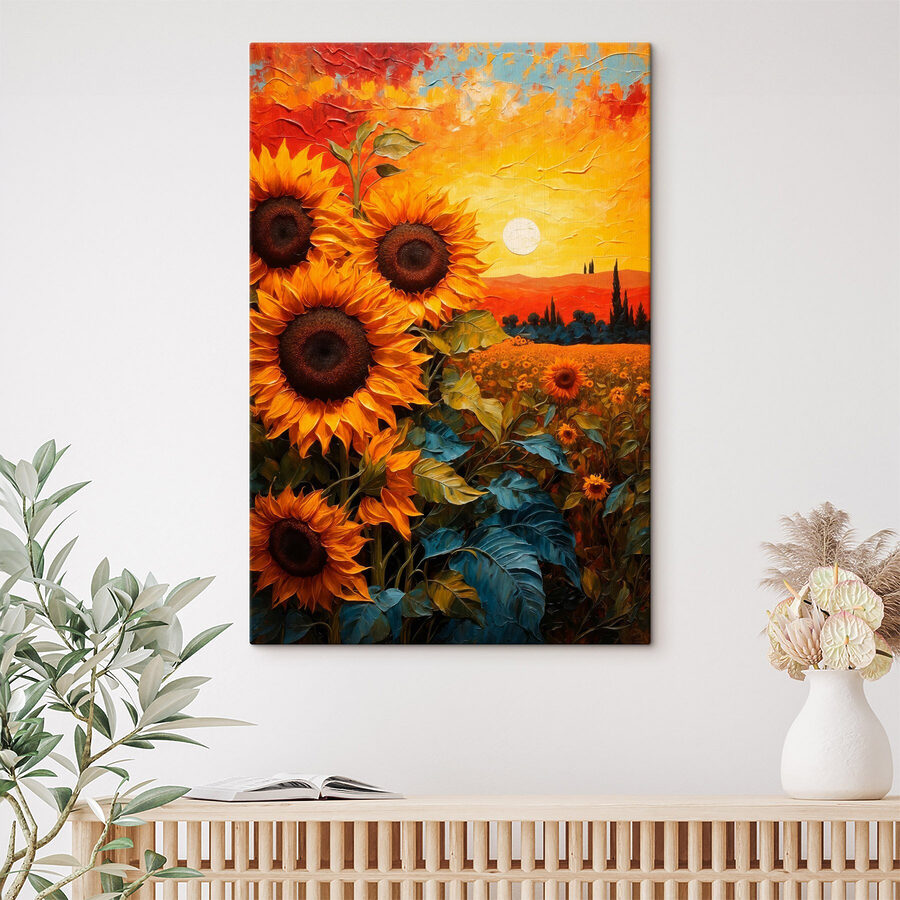 Illuminez n’importe quel espace avec cette superbe impression sur toile de tournesols se prélassant dans un champ doré. Imaginez que vous entrez dans une pièce et qu’ils sont là, joyeux et audacieux, rappelant à tous la beauté de la nature ! Les jaunes chauds et les verts profonds sont comme un câlin pour les yeux. Ils sont parfaits pour un coin confortable ou pour égayer un mur qui se sent un peu seul. De plus, c’est un excellent sujet de conversation – qui n’aime pas les tournesols ? Les moments passés ici seront un peu plus joyeux, comme un pique-nique ensoleillé.