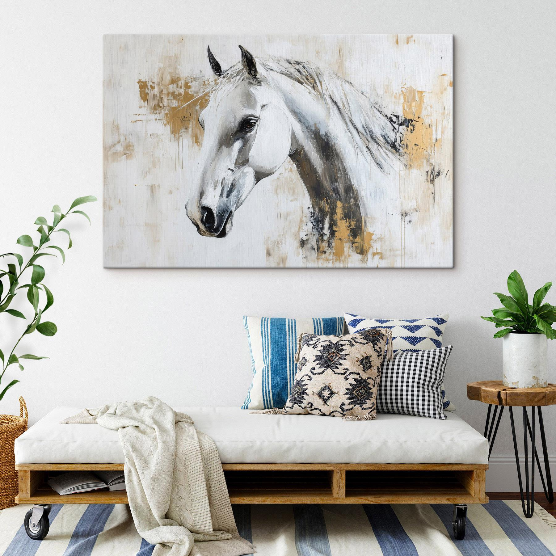 Apportez une touche d’élégance sauvage à votre intérieur avec cette superbe impression sur toile représentant un majestueux cheval blanc. Imaginez que vous entrez dans votre espace et que vous ressentez instantanément la force tranquille de cette magnifique créature. Le fond doux et neutre laisse transparaître l’expression tranquille du cheval, invitant à des moments de réflexion. Parfaite pour n’importe quelle pièce, cette œuvre d’art murmure des histoires de liberté et de grâce, rappelant à tous ceux qui la voient une époque plus simple. Qu’il s’agisse d’un coin douillet ou d’un salon animé, cette œuvre s’intègre parfaitement, suscitant des conversations et peut-être quelques rêves de galop à travers des champs ensoleillés. C’est parfait, n’est-ce pas ?