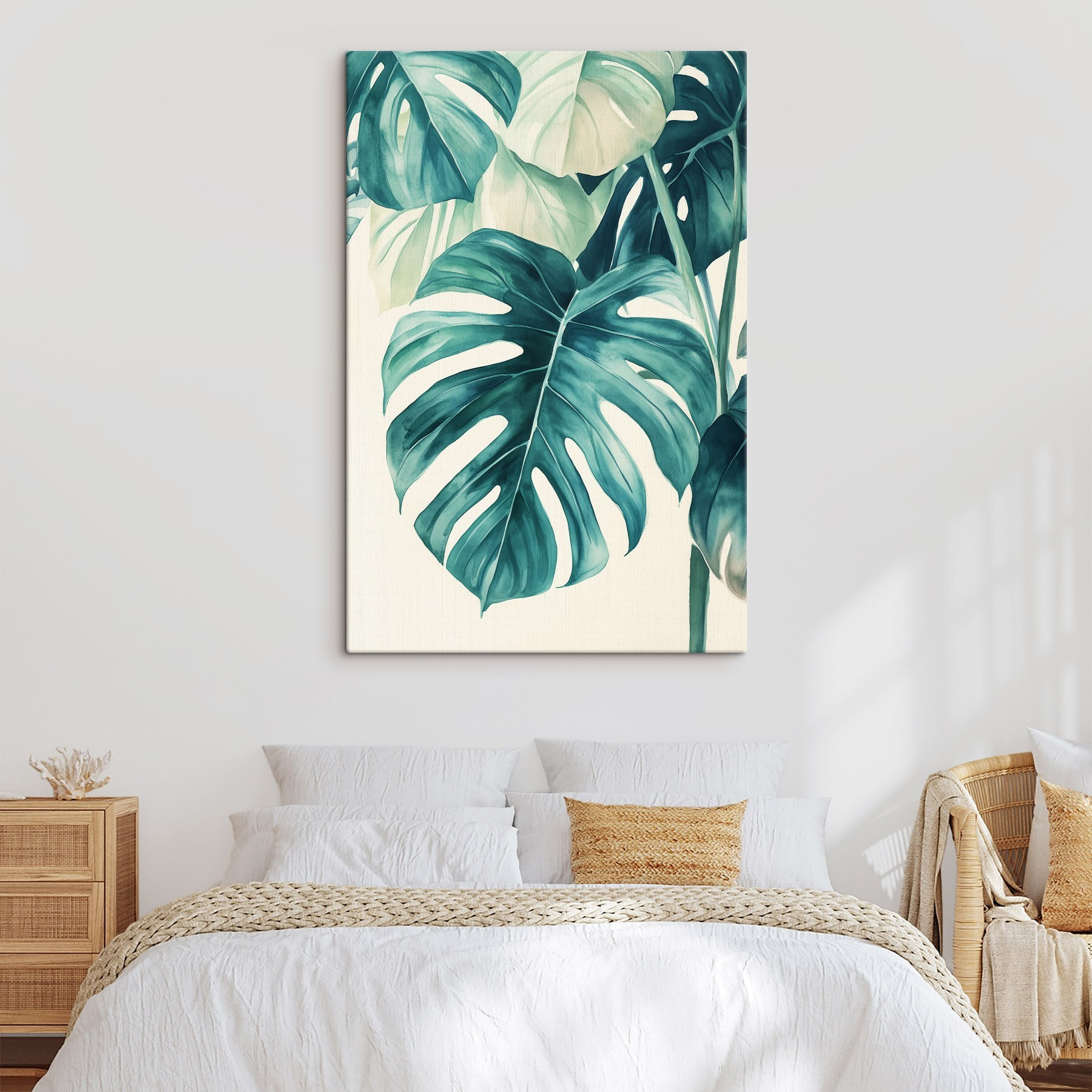 Transformez n’importe quel mur en oasis de paix grâce à cette toile imprimée de feuilles tropicales. C’est comme si vous apportiez une partie de la forêt tropicale dans votre salon, sans l’humidité, bien sûr. Imaginez que vous vous prélassiez sur votre canapé, que vous sirotiez un café et que vous vous sentiez comme dans une mini escapade. Les verts riches et les teintes douces créent une ambiance calme qui rend tout un peu plus lumineux. Parfait pour ceux qui apprécient la nature mais n’ont pas la main verte. Superposez-le à d’autres œuvres d’art ou laissez-le seul ; dans tous les cas, il ne manquera pas de susciter la joie et peut-être même des rêves d’aventures tropicales !