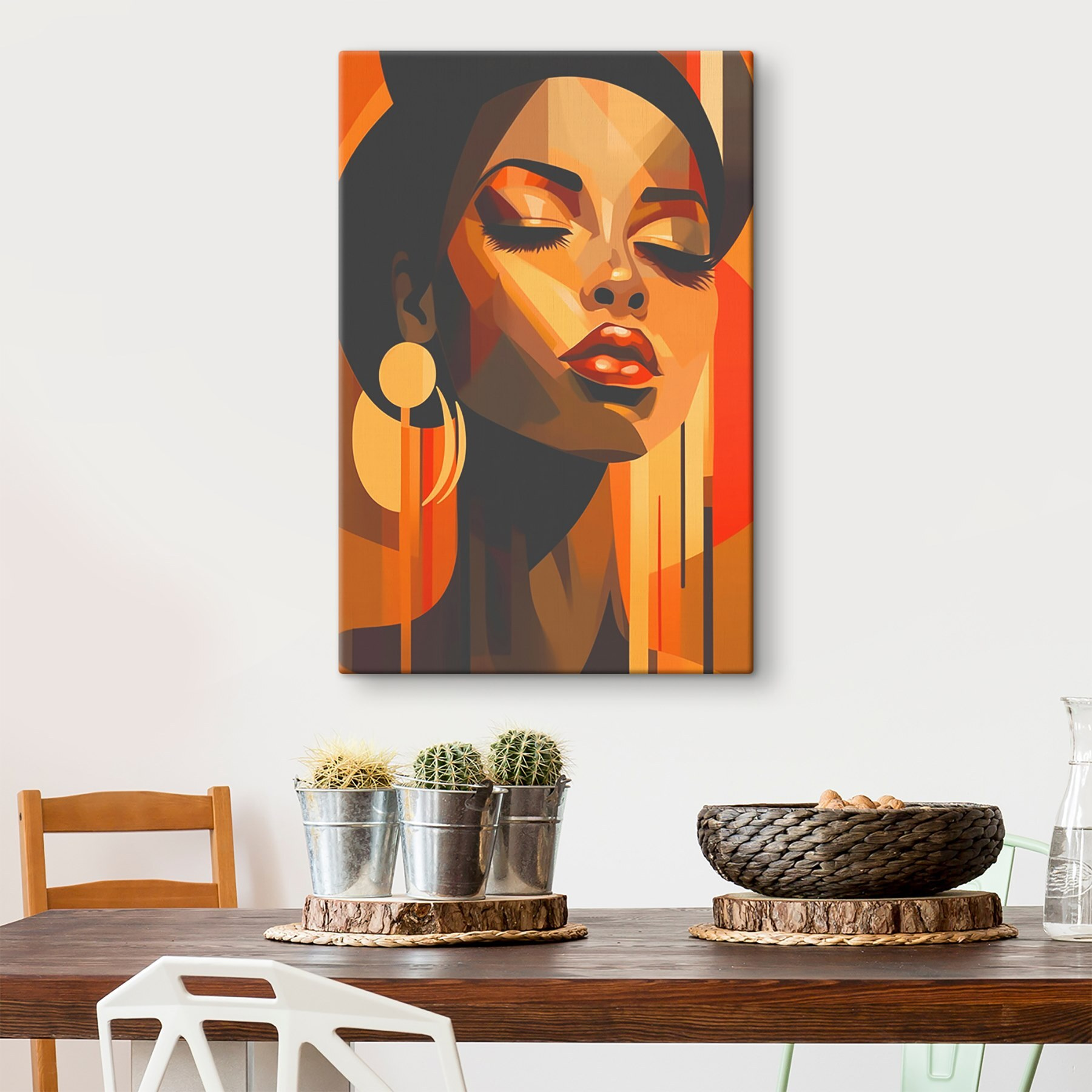 Entrez dans un monde d’ondes chaleureuses et accueillantes avec cet élégant portrait aux teintes vibrantes. Imaginez-le suspendu au-dessus de votre canapé, illuminant instantanément la pièce et élevant les esprits, comme la première gorgée de café d’un matin froid. Les tons riches prennent vie, tissant des histoires de confort et de créativité. Il suscite une conversation, peut-être sur l’art, la vie ou la fois où quelqu’un a essayé de maîtriser l’art de la peinture et s’est retrouvé avec un désastre coloré. Parfaite pour ajouter une touche de personnalité, cette toile est plus qu’un simple décor ; c’est une étreinte chaleureuse pour le mur. Embrassez la beauté !