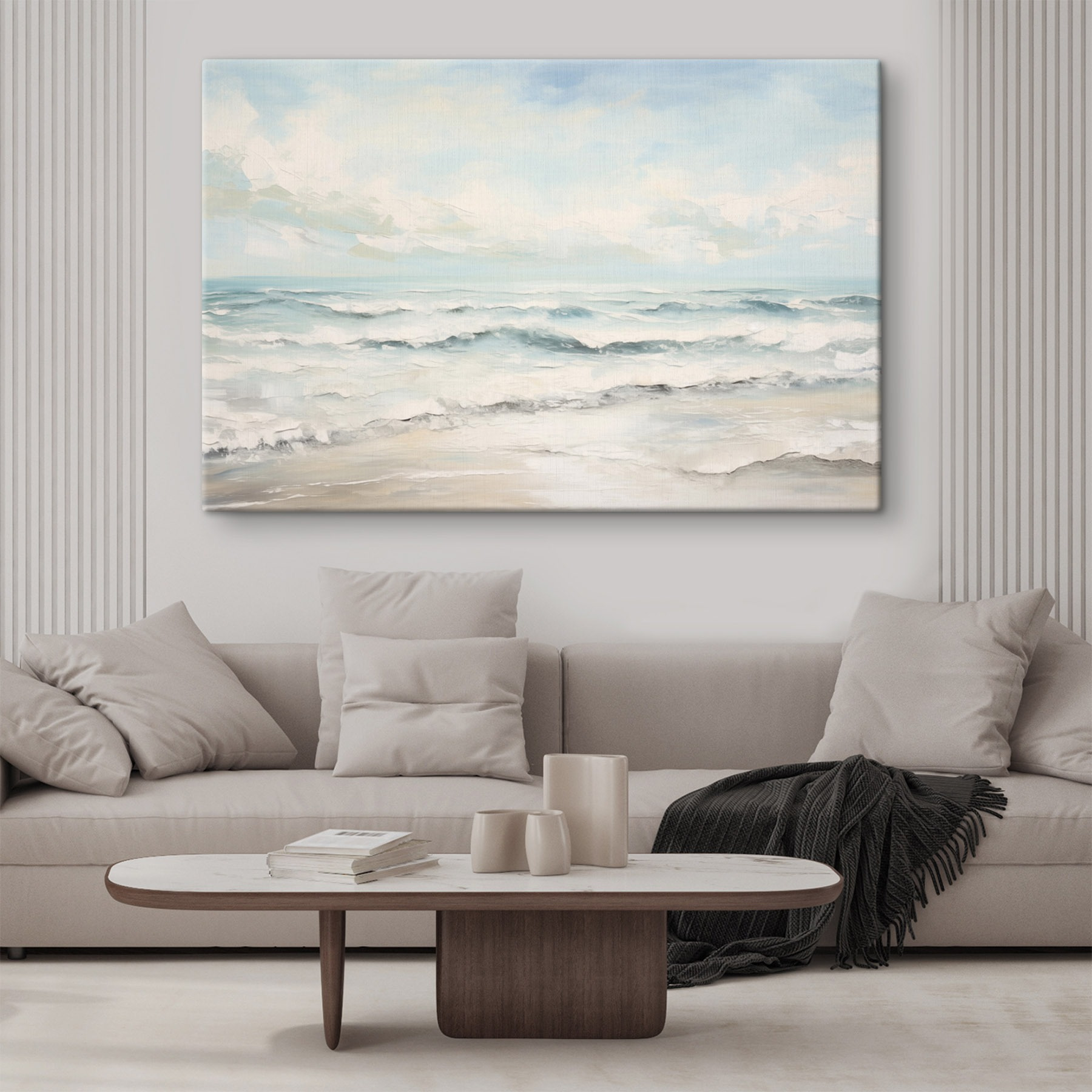 Apportez un peu de plage dans votre maison avec cette superbe impression sur toile de vagues dansant sur le rivage. Imaginez le doux bruit des vagues et la brise salée chaque fois que vous regardez cette beauté – c’est comme des mini-vacances pour vos yeux. Les bleus et blancs doux créent une ambiance paisible, donnant à tout espace une sensation d’air et de lumière. Parfait pour un salon, une chambre à coucher ou même un coin lecture confortable, il suscitera certainement des conversations rêveuses. De plus, qui n’a pas envie de se rappeler les journées de plage paresseuses ? Accrochez-le, détendez-vous et laissez les bonnes vibrations vous envahir !