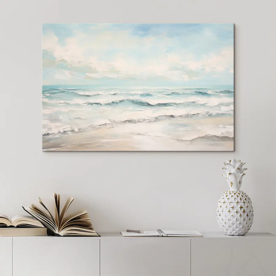 Apportez un peu de plage dans votre maison avec cette superbe impression sur toile de vagues dansant sur le rivage. Imaginez le doux bruit des vagues et la brise salée chaque fois que vous regardez cette beauté – c’est comme des mini-vacances pour vos yeux. Les bleus et blancs doux créent une ambiance paisible, donnant à tout espace une sensation d’air et de lumière. Parfait pour un salon, une chambre à coucher ou même un coin lecture confortable, il suscitera certainement des conversations rêveuses. De plus, qui n’a pas envie de se rappeler les journées de plage paresseuses ? Accrochez-le, détendez-vous et laissez les bonnes vibrations vous envahir !