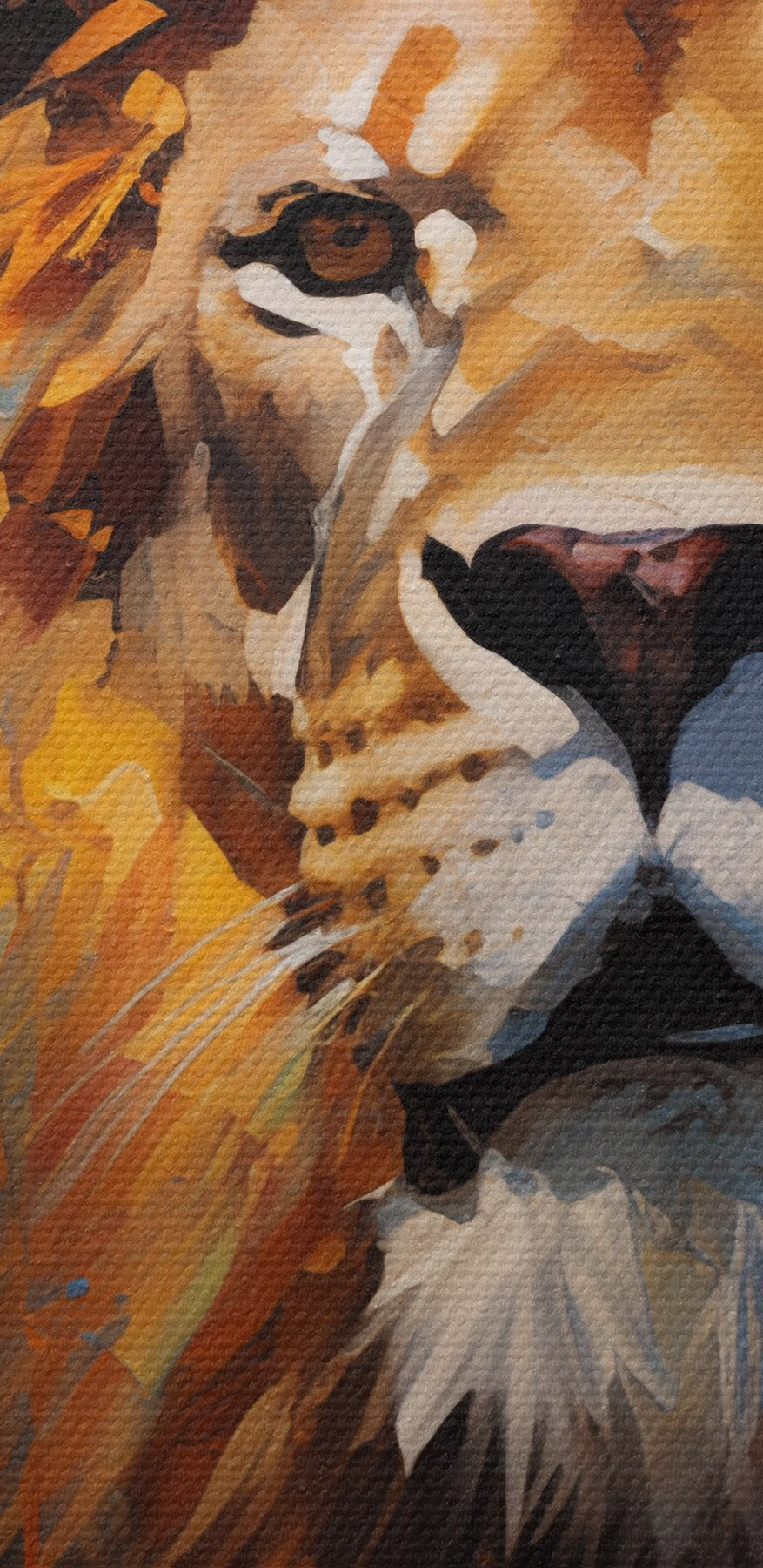 Cet art du lion n’est pas seulement destiné aux amoureux des animaux, il apporte une touche unique à n’importe quel espace. Qu’il s’agisse d’égayer un coin douillet ou de donner un coup de fouet à un salon, il a tout pour plaire. Les traits enjoués et la crinière ardente créent une ambiance énergique qui fait presque entendre les bruits de la jungle. Imaginez-la suspendue dans une galerie d’art ou en solo au-dessus d’un canapé branché. Plus qu’un simple décor, c’est une pièce qui raconte une histoire, la vôtre !