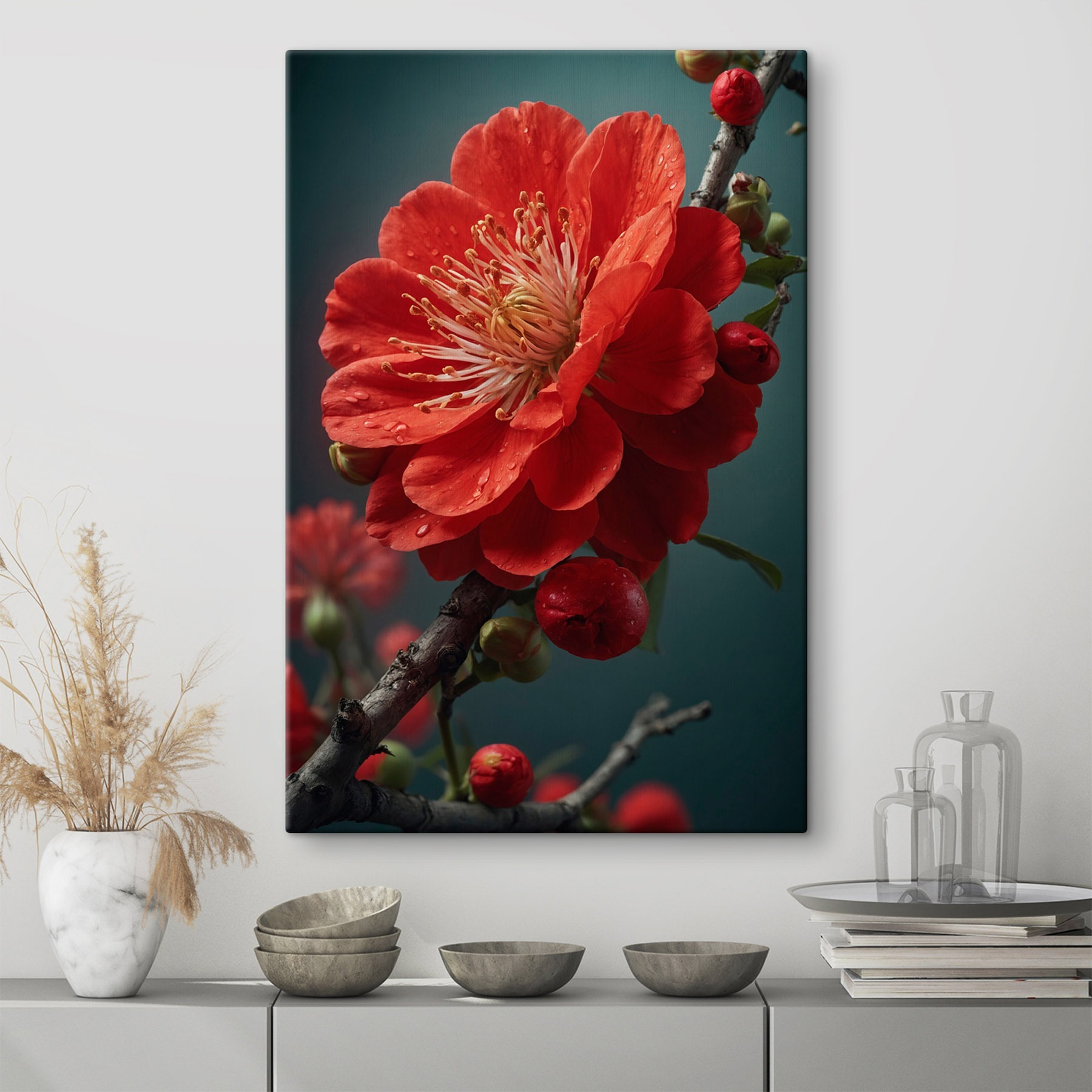 Apportez une touche de nature à l’intérieur avec cette superbe impression sur toile de fleurs vibrantes, délicatement ornées de gouttelettes. C’est comme si vous aviez un morceau de printemps tout au long de l’année – qui n’en voudrait pas ? Imaginez que vous entrez dans une pièce où ces fleurs flamboyantes vous accueillent avec leur teinte joyeuse, ce qui met instantanément de l’ambiance. Qu’elle soit suspendue au-dessus d’un canapé confortable ou qu’elle illumine un espace de travail, cette œuvre d’art crée une atmosphère accueillante. De plus, elle constitue un excellent point de départ pour les conversations. Vous pourriez même recevoir quelques compliments, et qui n’aime pas cela ?