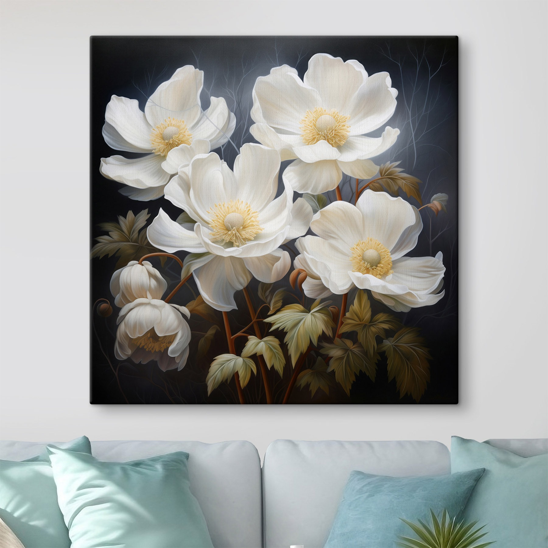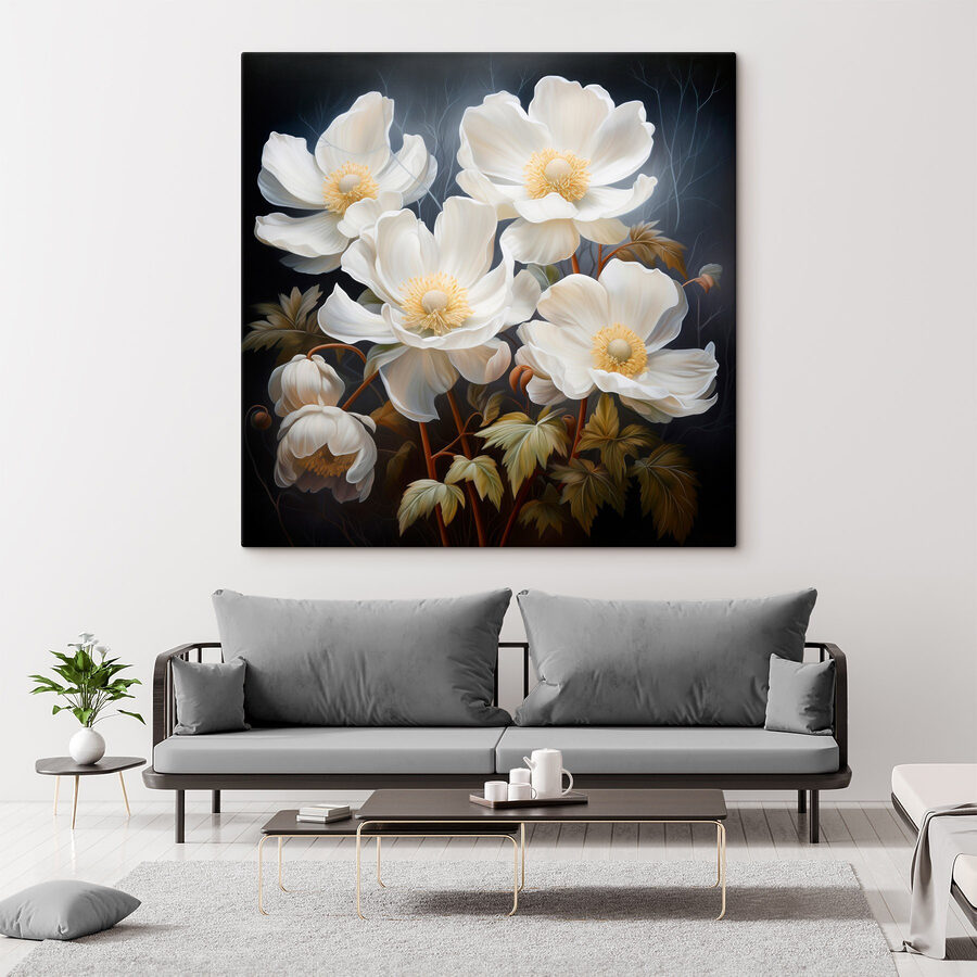 Prenez une bouffée d’air frais avec cette superbe impression sur toile représentant de magnifiques fleurs blanches. Chaque fleur semble danser sur la toile, invitant un sentiment de calme et de sérénité dans n’importe quel espace. Imaginez que vous passiez devant et que vous ayez l’impression de pénétrer dans un jardin de rêve, sans avoir besoin d’avoir la main verte. Que ce soit dans un coin lecture confortable ou pour égayer votre salon, cette pièce ajoute sans effort du charme et du caractère. C’est comme si vous aviez un petit coin de nature à l’intérieur, parfait pour les jours où vous préférez profiter des fleurs plutôt que de vous en occuper. Cette œuvre d’art ne manquera pas de susciter des conversations et de créer une atmosphère accueillante pour les amis et la famille.
